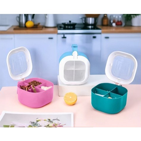 Tempat Wadah Bumbu Dapur Sekat 4in1 Serbaguna / Kotak Penyimpanan Gula Bumbu Garam / Seasoning Box / Kotak Bumbu Dapur G