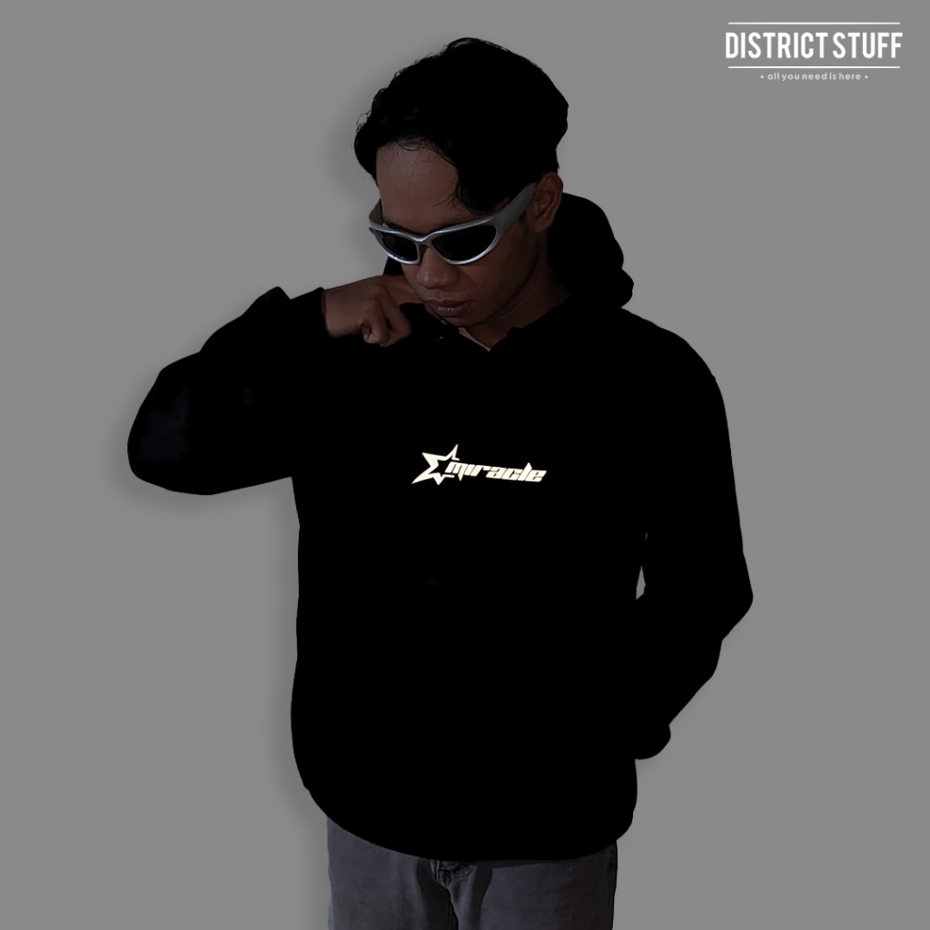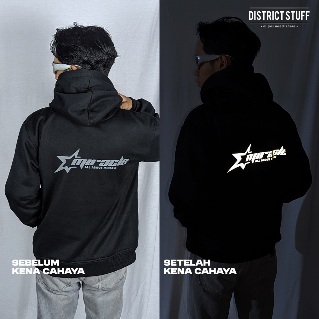 Hoodie Jumper Reflektif Miracle Menyala Dalam Gelap Jaket Pria Wanita Cotton Fleece Premium