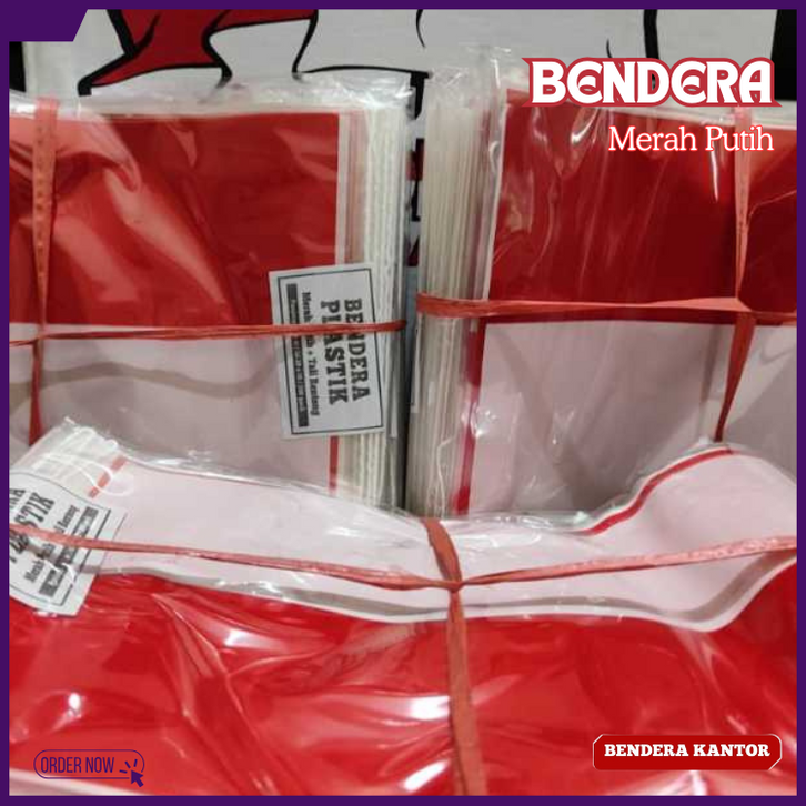 Bendera Plastik Merah Putih Renteng (Sudah Bertali) Bahan Premium Plastik Opp Isi 10 Pak