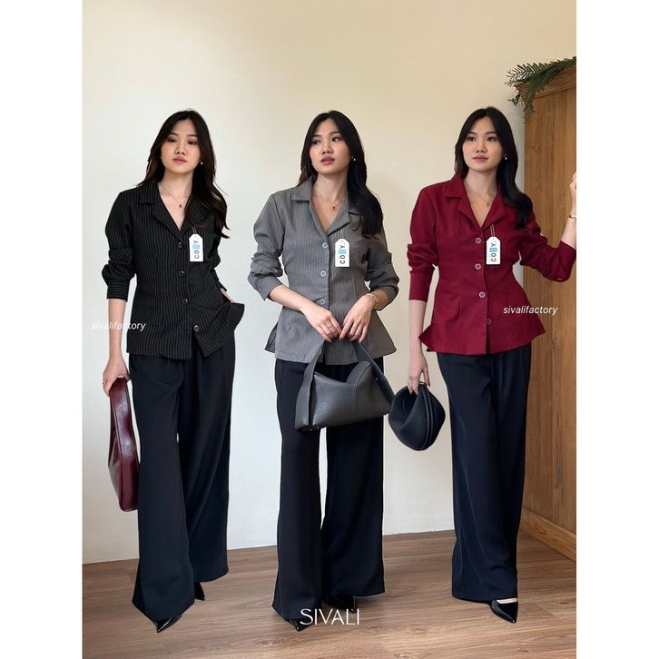 GROSIR SIVALI Esme Blazer - Fitted Stripe Shirt Blazer Semi Wool Atasan Wanita Lengan Panjang icalmn
