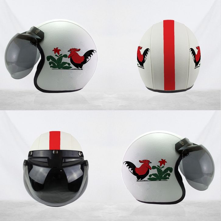 Helm Bogo Retro Kulit Mangkok Ayam Jago Putih Merah Unik Free Tambah Nama