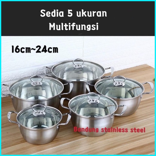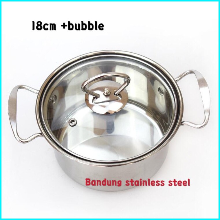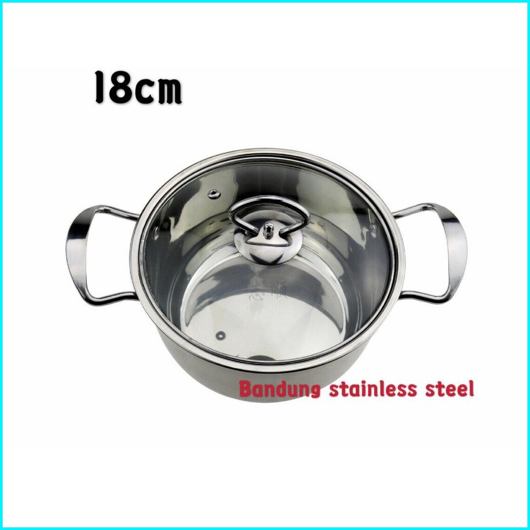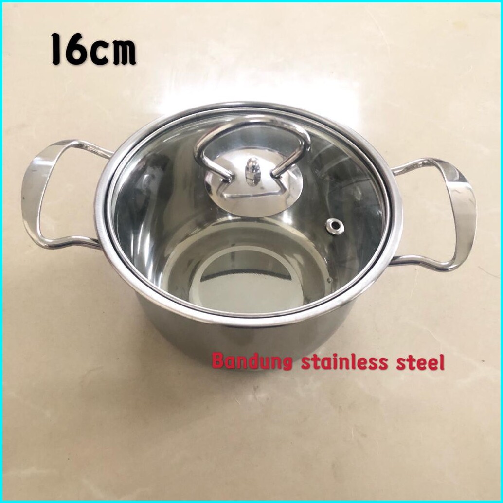 Panci Sup Soup Pot 16cm 18cm Stainless Steel Tutup Kaca Murah Kecil