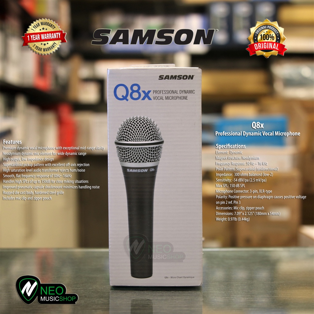 Samson Q8X Premium dynamic vocal microphone with mid-range clarity