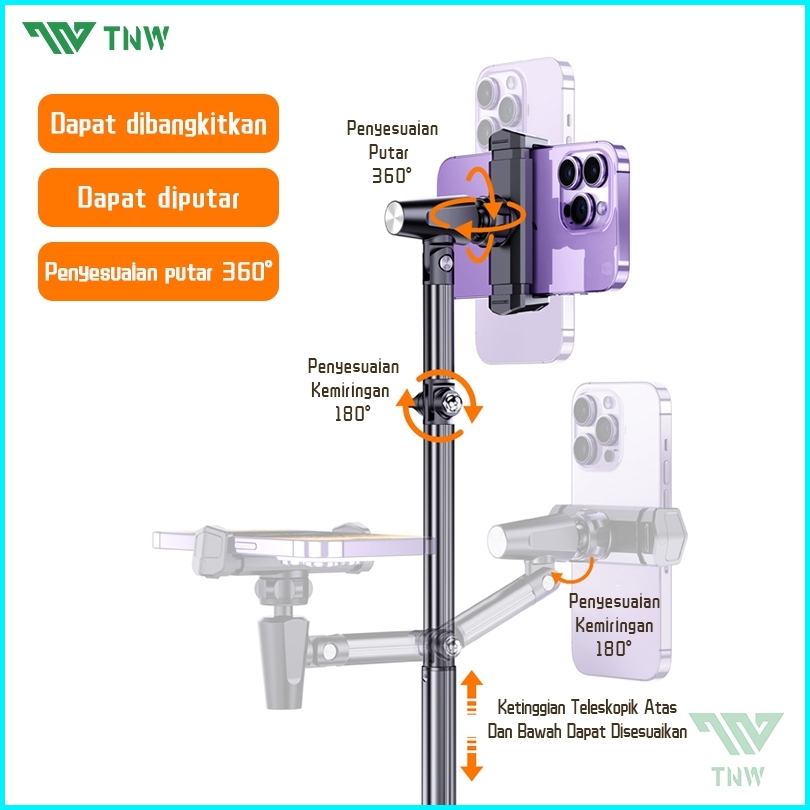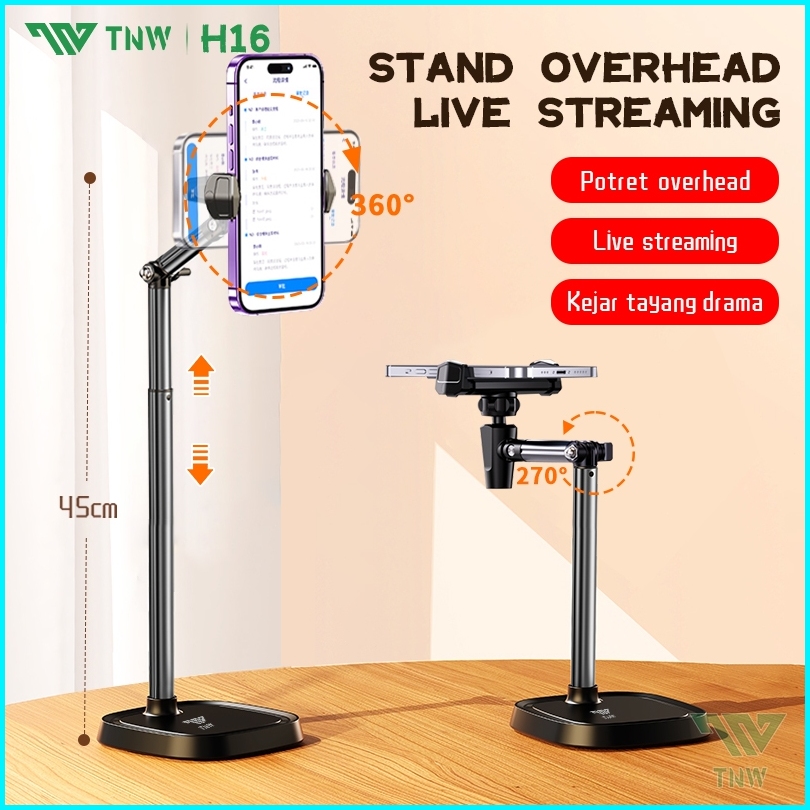 Tnw H16 Stand Holder Handphone Aluminium Aloy Overhead Phone Stand Fotografi Stand Holder Hp Flexible Rotate 360 Lazypod