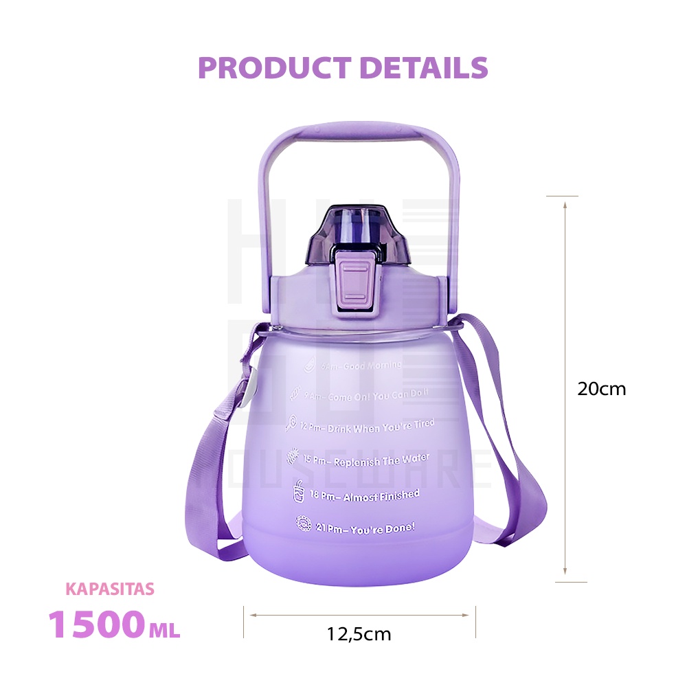 HUGO Botol Minum Motivasi Pastel Gradient Rainbow 1.5 Liter BPA FREE Gratis Stiker