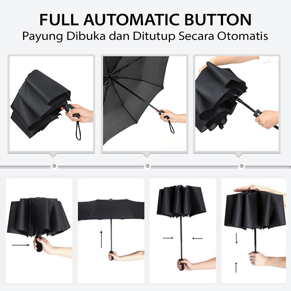PROMO Payung Lipat Otomatis Buah Lipat Tiga Anti UV Fiber Premium Quality HUGO