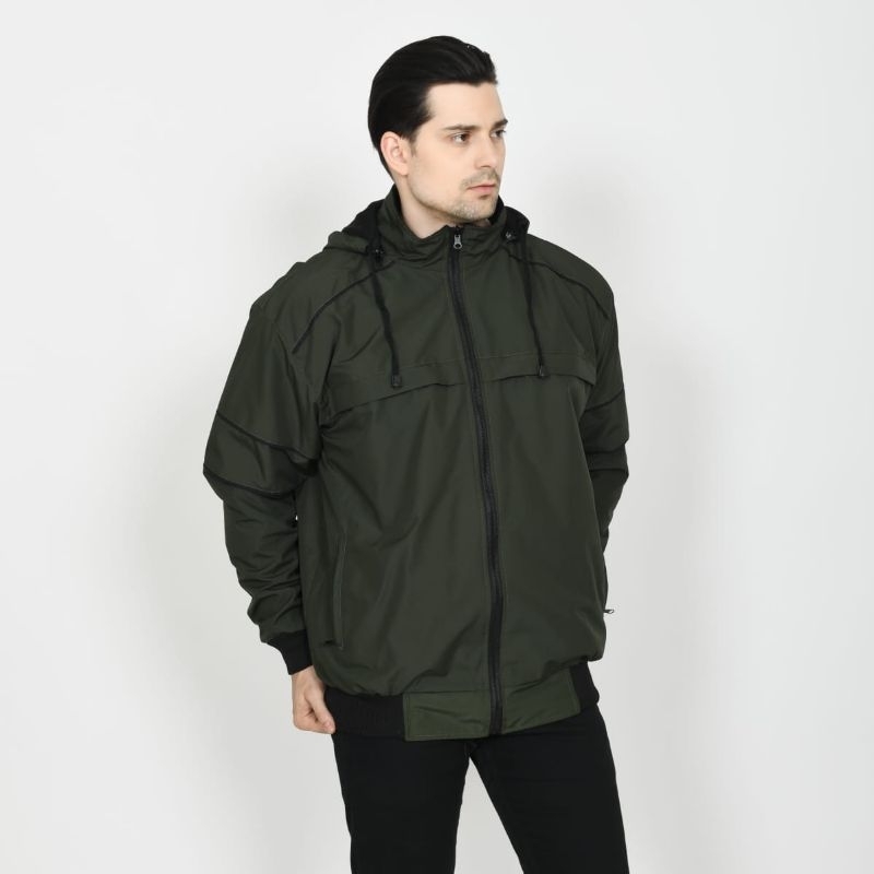 Divens Jaket parasut Pria Wind breaker Outdoor Waterproof Bahan Taslan premium Bolak Balik