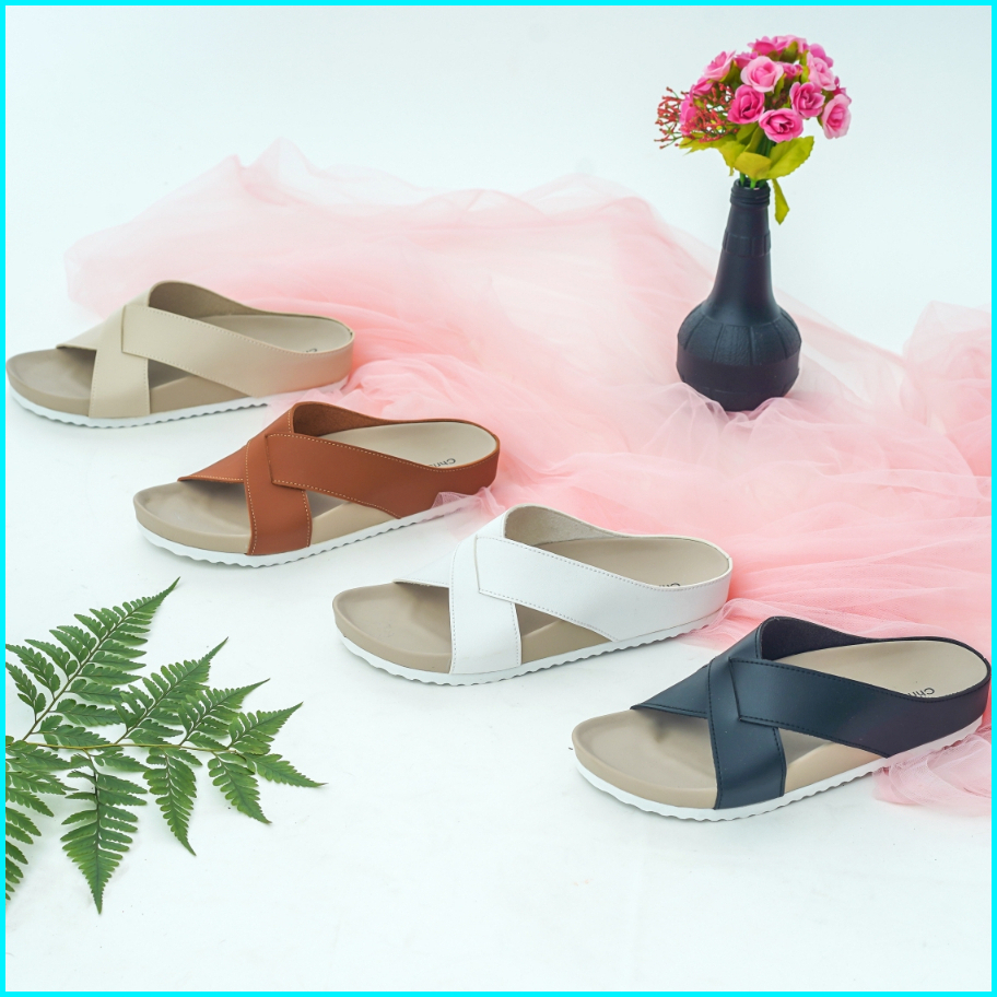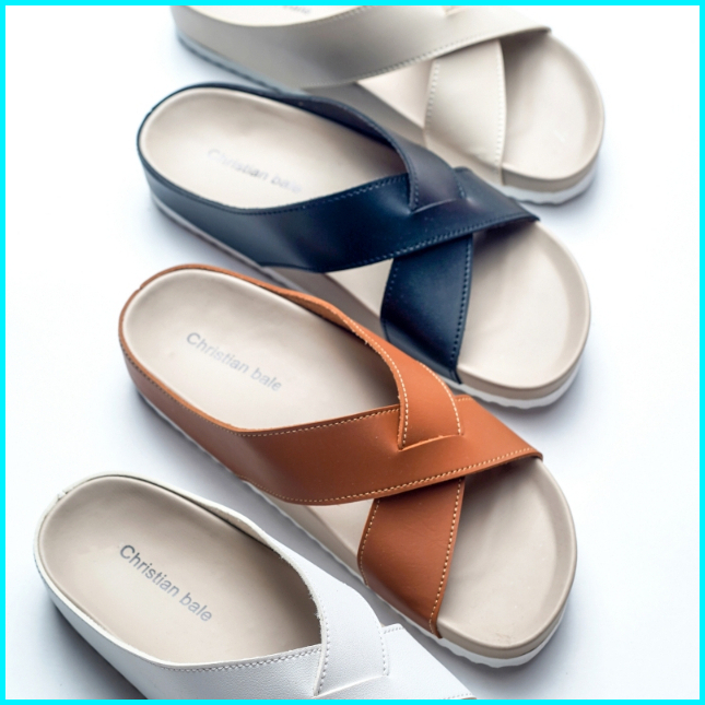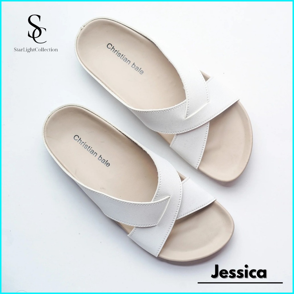Christian Bale Jessica Sandal Tali Wanita Casual Ban Dua Silang Sendal Slop Cewek Anti Slip Kekinian