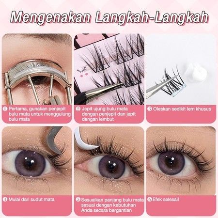 【Seri Setan Kecil】Bulu Mata Palsu Tersegmentasi Natural Eyelash Extension +Lem+Curler 7801