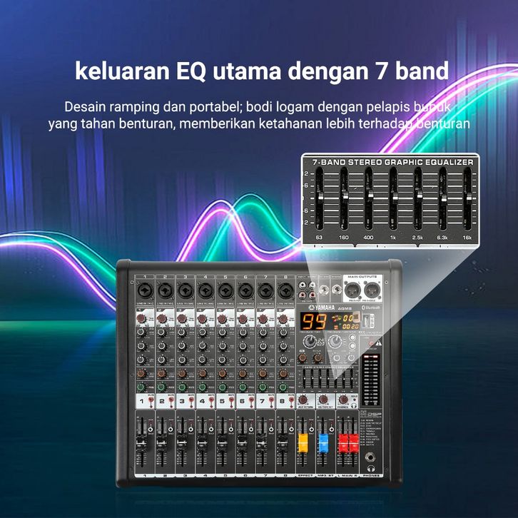 power mixer 8Ohm 650 wattx2 yamaha/AGM8,mixer power amplifier 7jalur equalizer,Bluetooth,99 DSP,48V
