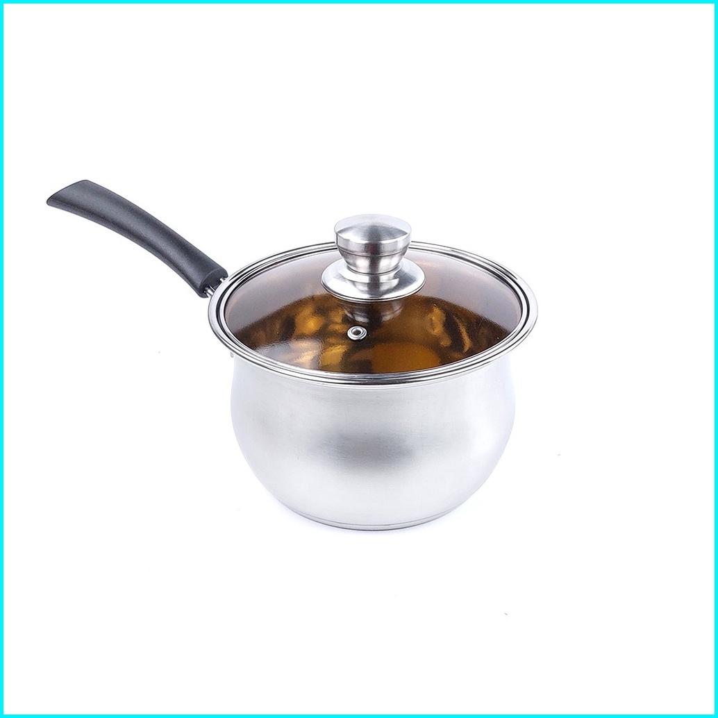 Top100 Online - Panci Susu Stainless Steel Panci Milk Pot Gagang Tutup Kaca Tebal 16cm