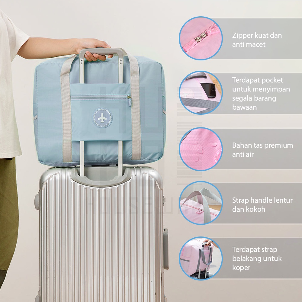 HUGO Tas Travel Besar Lipat Hand Carry Anti Air Travel Bag Fold Tas Koper Hand Carry Serbaguna Tebal