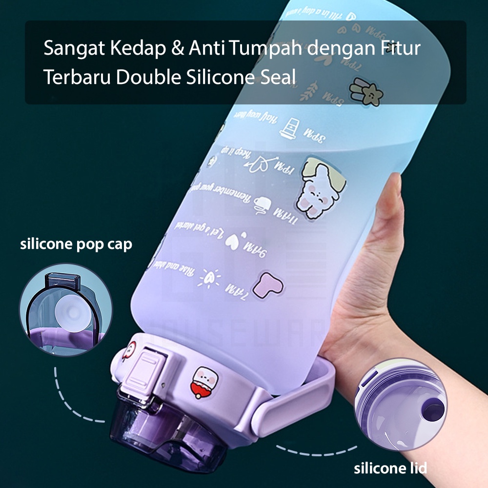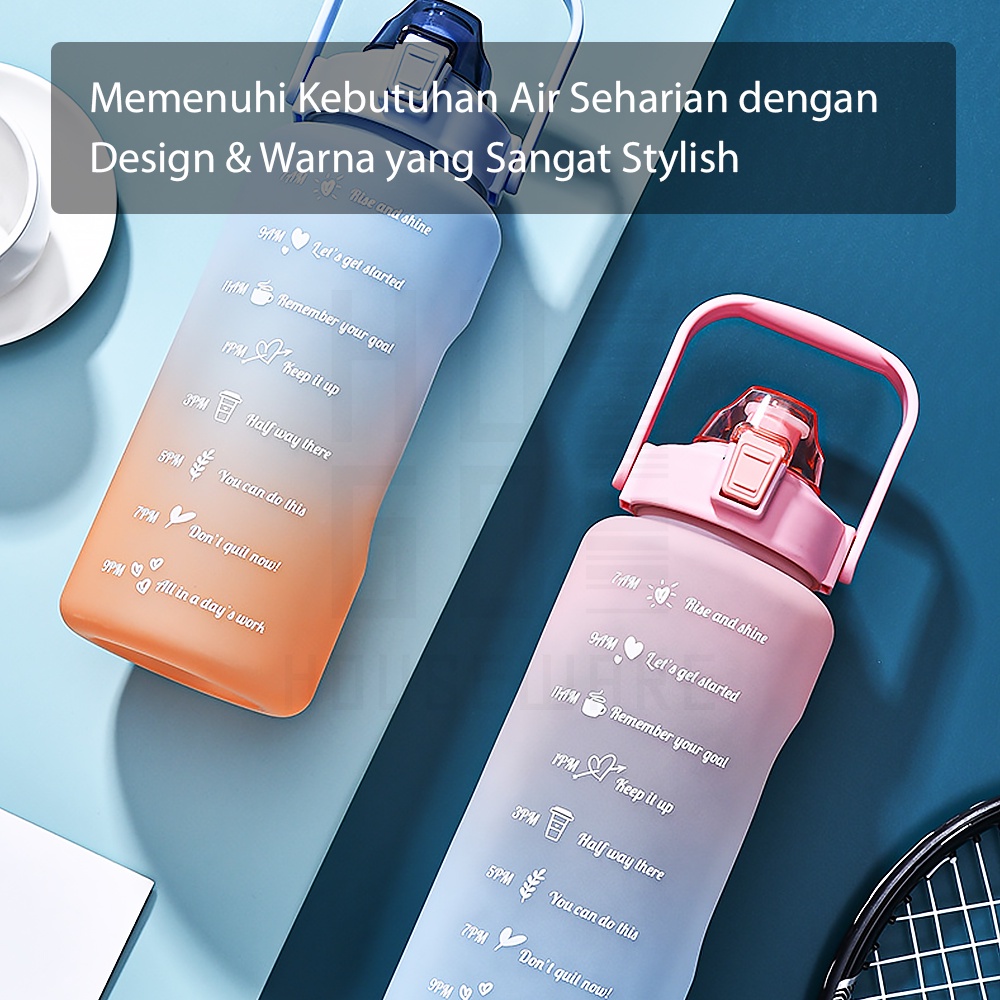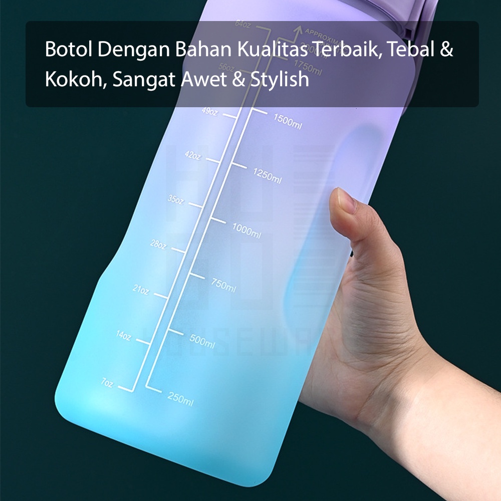 HUGO Botol Minum Pelangi Gradasi 2 Liter Motivation Gratis Stiker 2000 mL BPA FREE