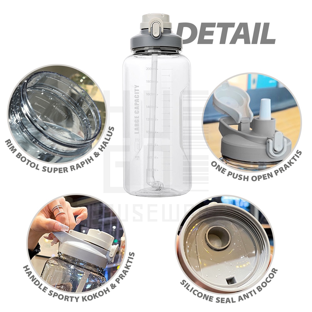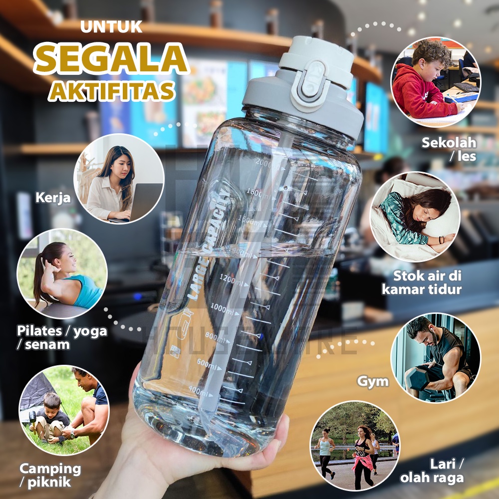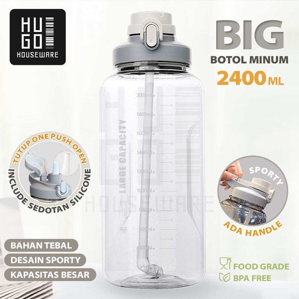 PROMO HUGO Botol Minum 2,4 Liter Jumbo Besar Anti Bocor Food Grade Tempat Air Minum 2400 ml