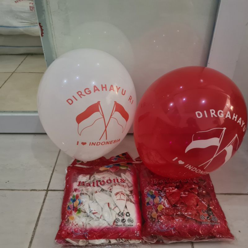 TANPA DP balon latex merah pituh dirgahayu Ri / balon 17 agustus per pack isi 100
