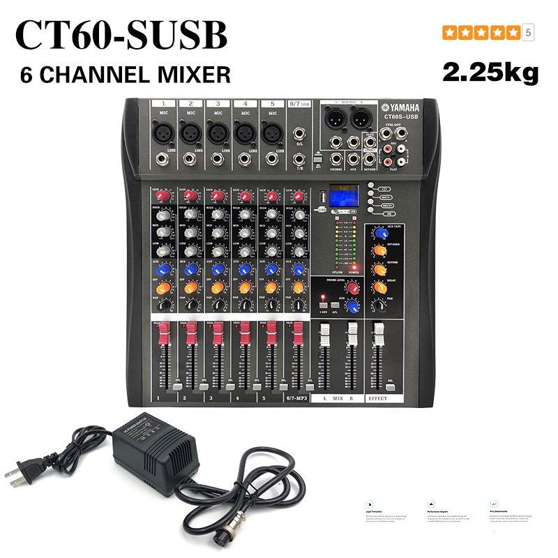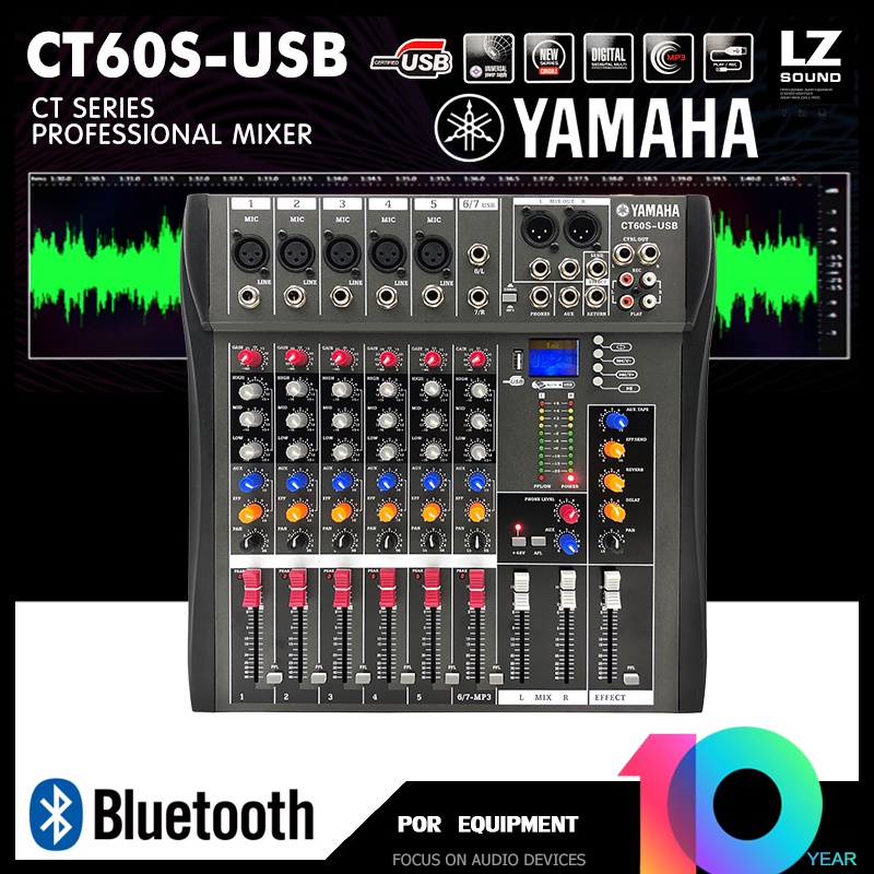 yamaha CT60S-USB pencampur audio DJ Mixer Audio 6 chanel Bluetooth USB PC MP3 Efek gema bawaan Peralatan rekaman Menyany