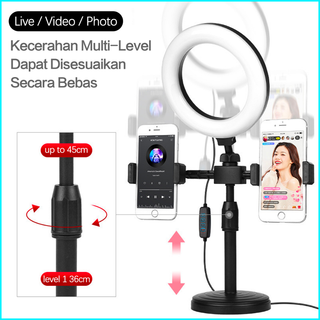 Lightning Ring Light 16cm Hp Tripod 2 Holder Mini Stand Selfie Streaming Tripod Usb Vlog Lampu