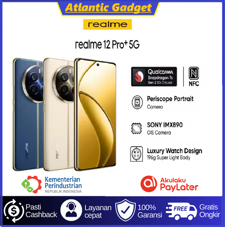 (FREE ONGKIR) Realme 12 Pro Plus 5G 8/256GB -12/512GB | Snapdragon® 7S Gen 2 | Layar 6.7' AMOLED | Baterai 5000mAh 67W