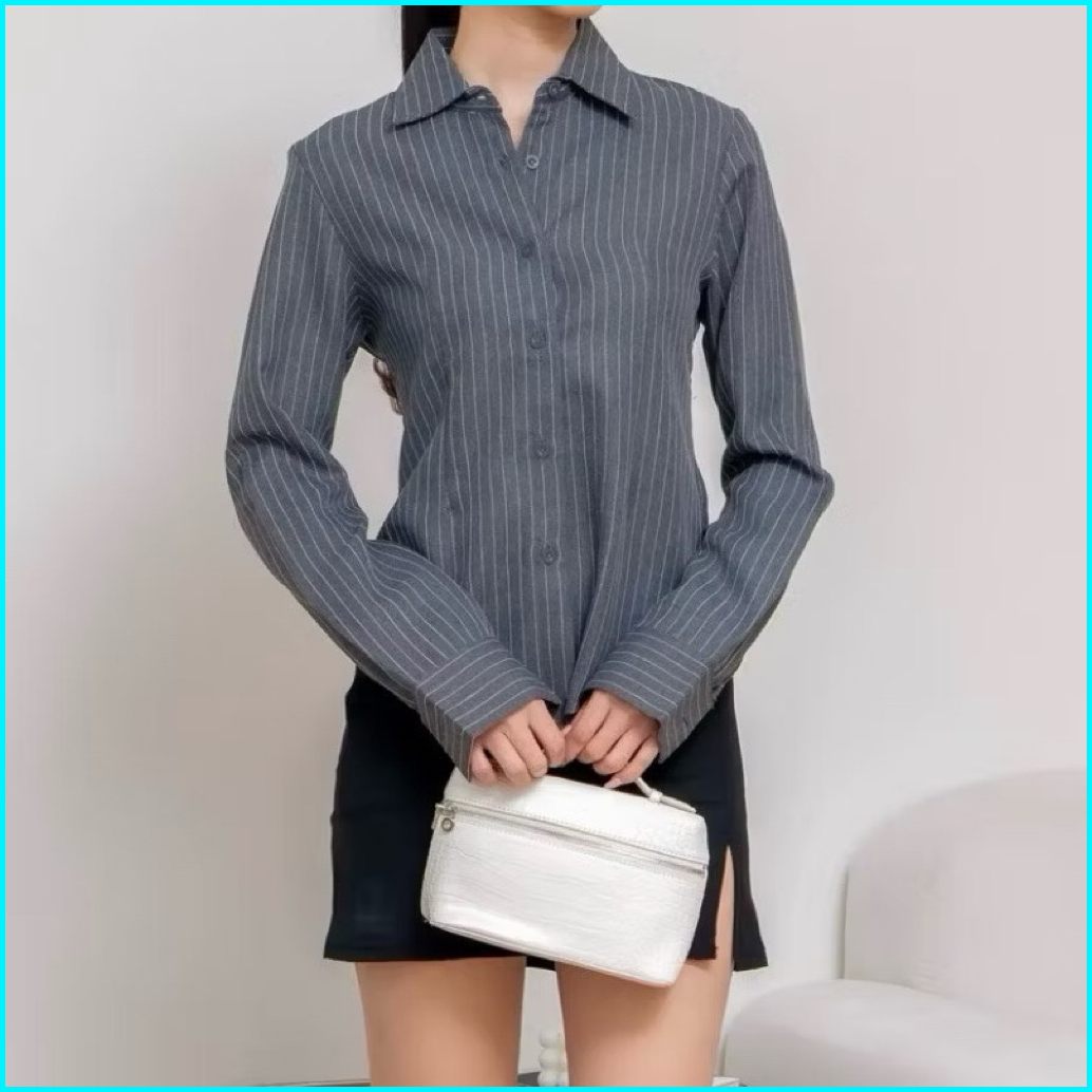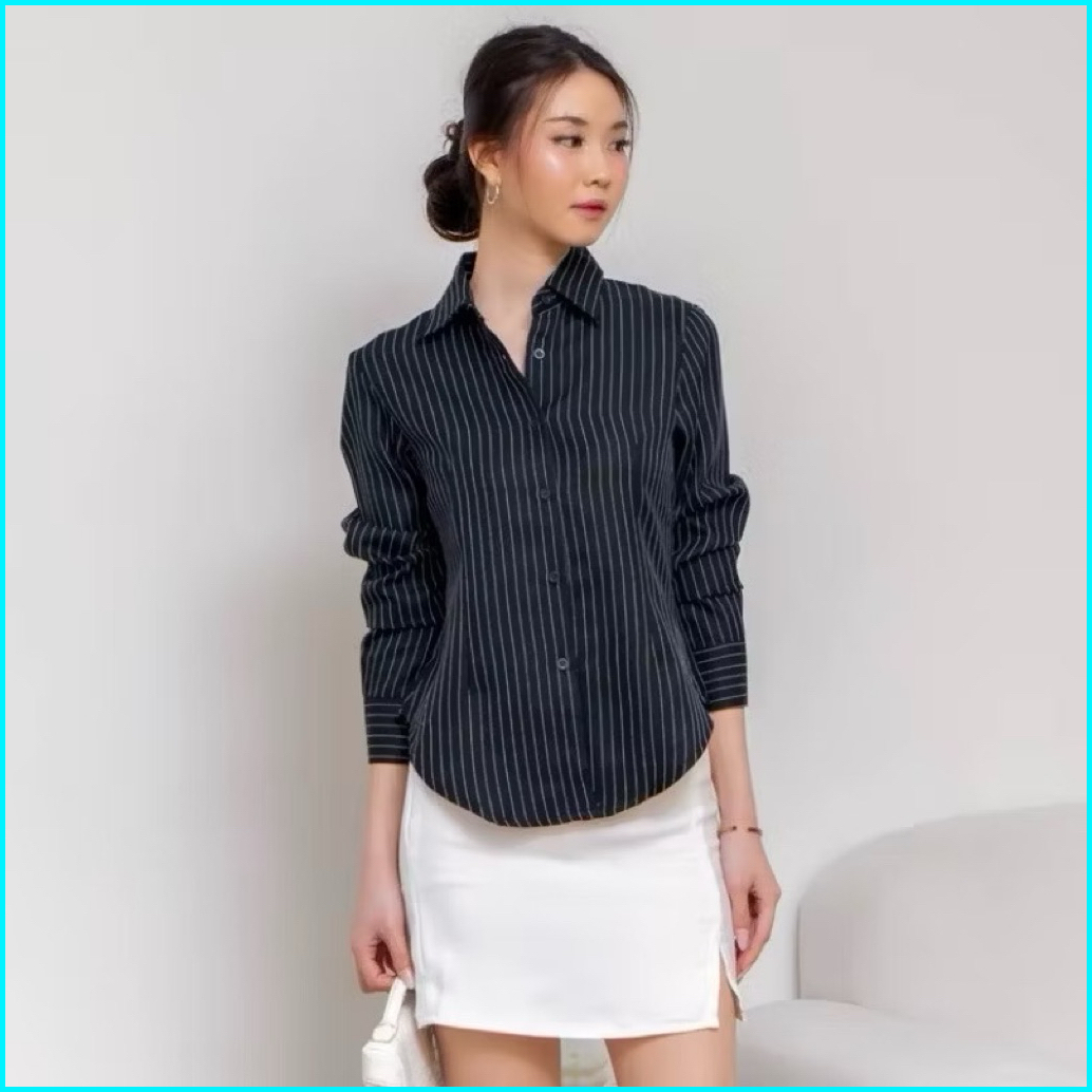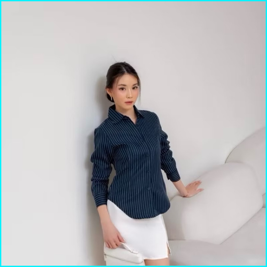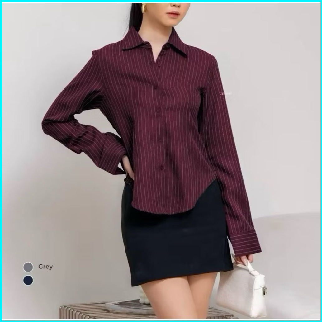 Luna Stripe Kemeja Fitted - Kemeja Wanita Fitted Stripe Salur Basic Casual - Atasan Lengan Panjang Semi Woll Premium