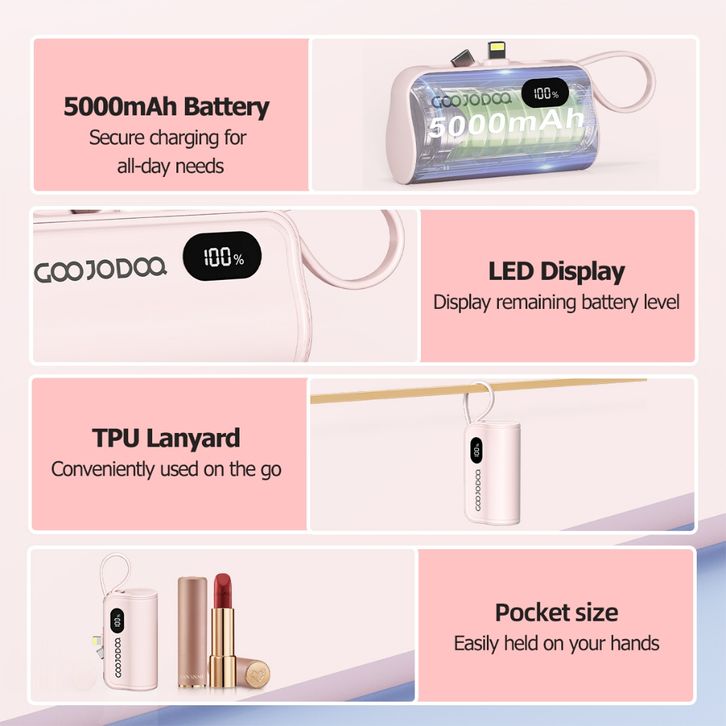 Power Bank Robot Original Fast Charging Anker GOOJODOQ 5000mah Mini Powerbank Dengan colokan ganda Lightning + Tipe C f