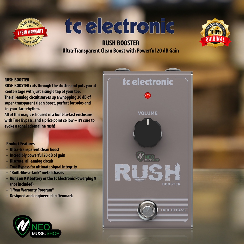 RUSH BOOSTER Ultra-Transparent Clean Boost with Powerful 20 dB Gain