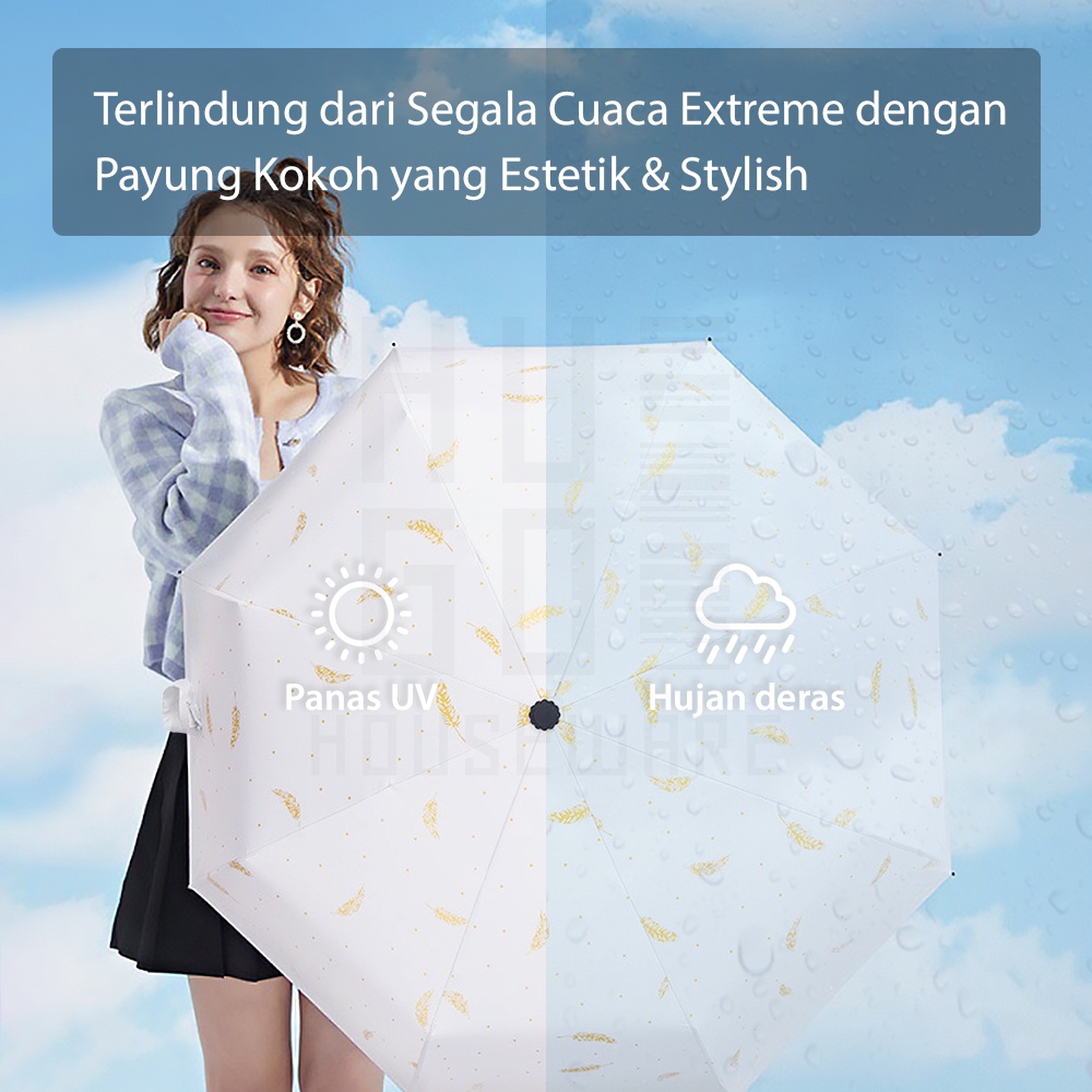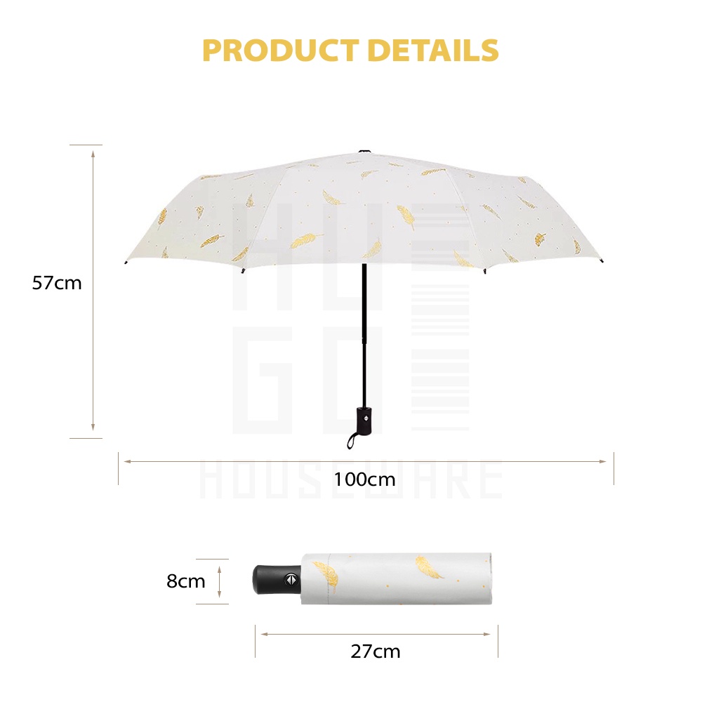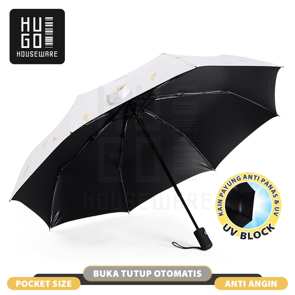 HUGO Payung Lipat Otomatis Buka Tutup Anti UV Protection Motif Feather Premium Quality