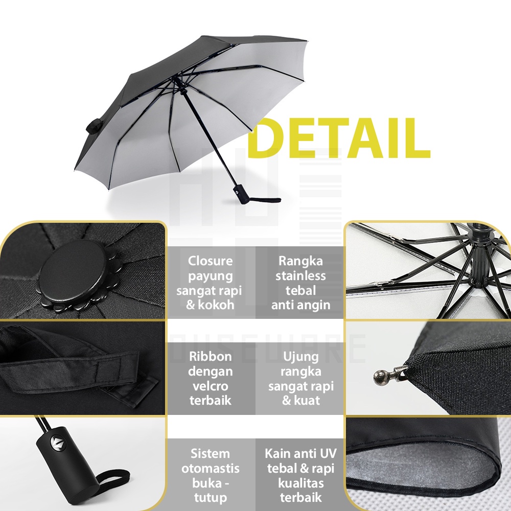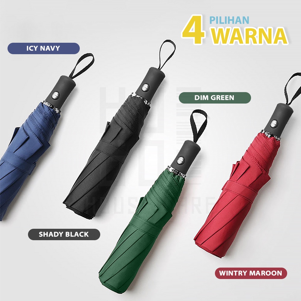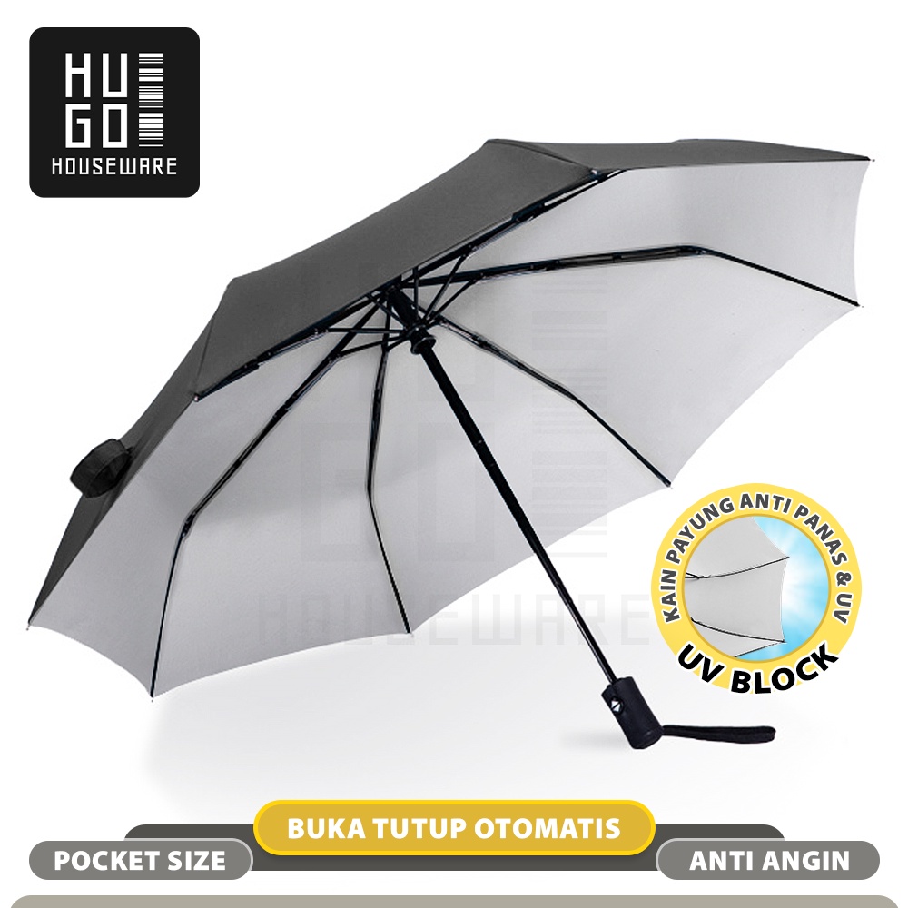 HUGO Payung Lipat Polos Otomatis Buka Tutup Anti UV Lipat Tiga Premium Quality