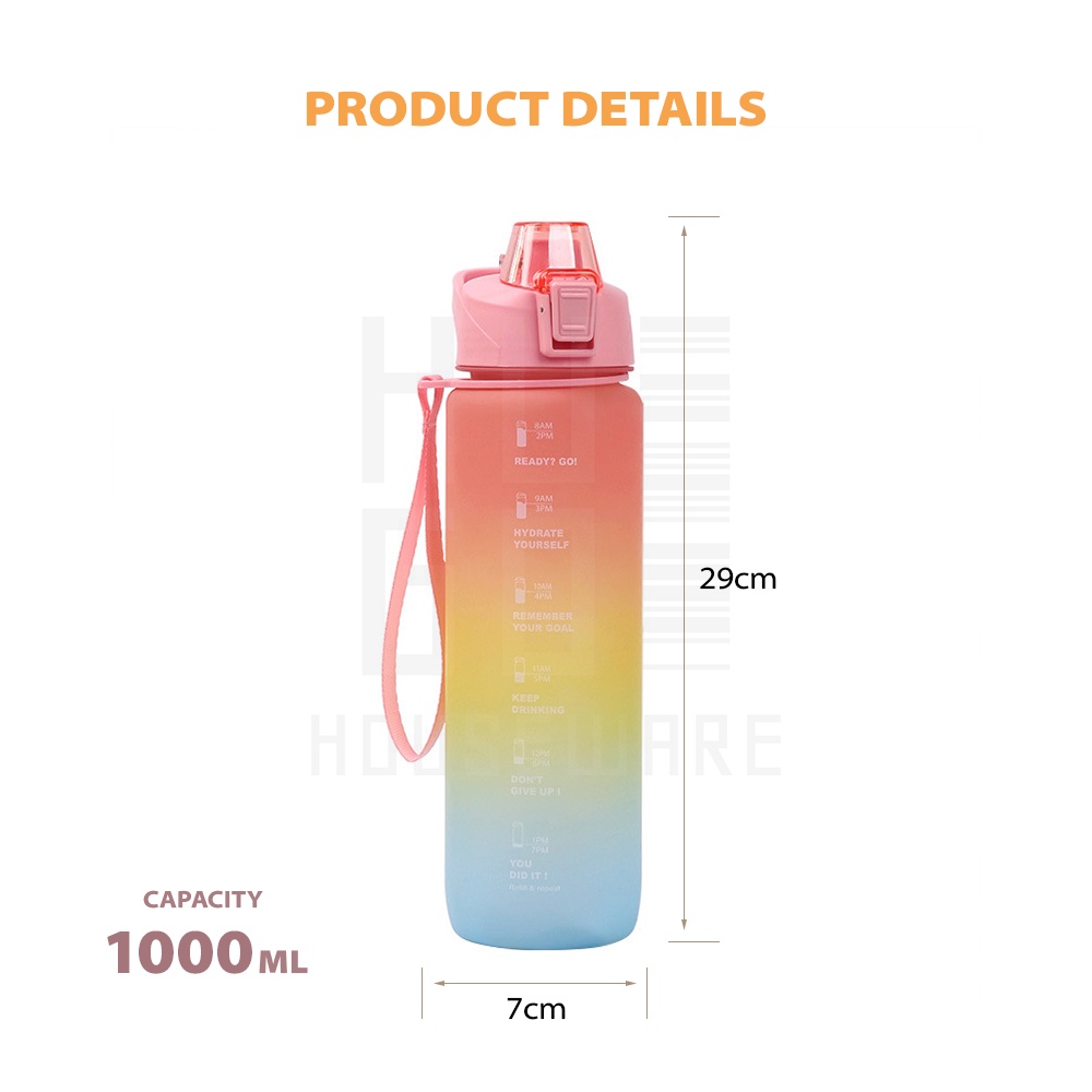 PROMO HUGO Botol Minum Motivasi Tutup Flip 1 Liter Rainbow Gratis Stiker