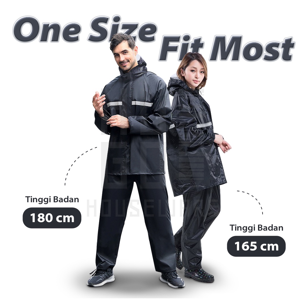 PROMO HUGO Jas Hujan Setelan Premium All Size Pria Wanita Tebal Anti Angin