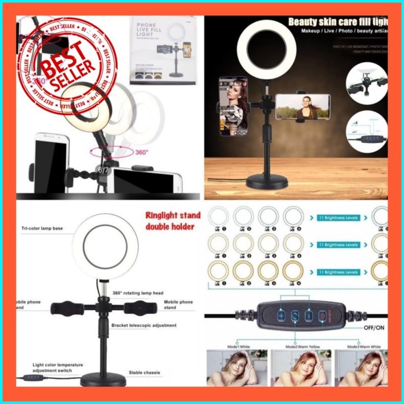 Ringlight 16cm Double Holder H399s 3 Mode Lamp Ring Cocok Buat