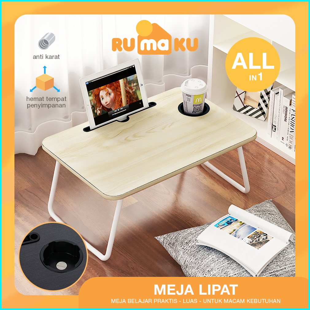 Rmk Meja Lipat Kayu Hpl Kaki Besi Laptop Belajar Lesehan Anak Sekolah Portabel