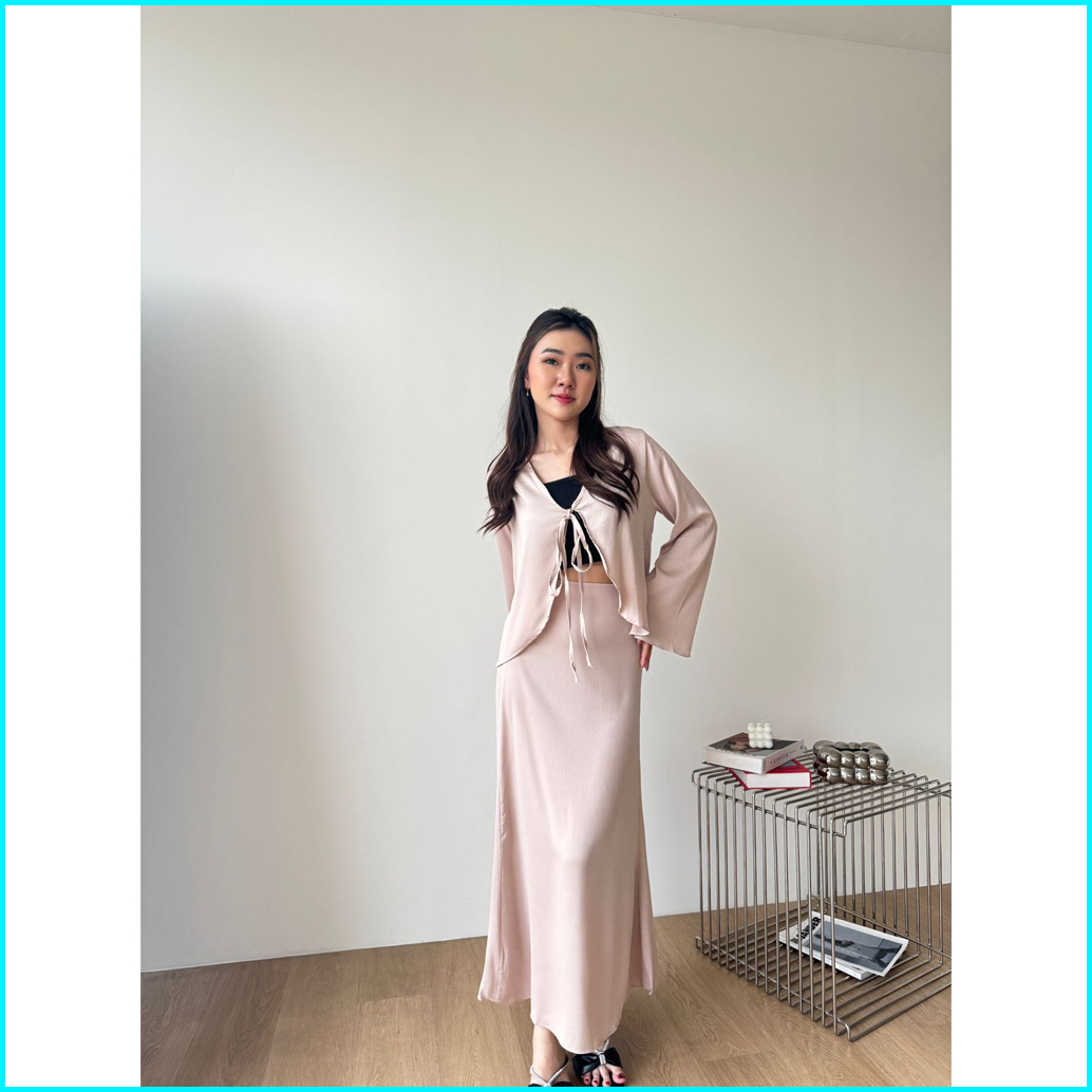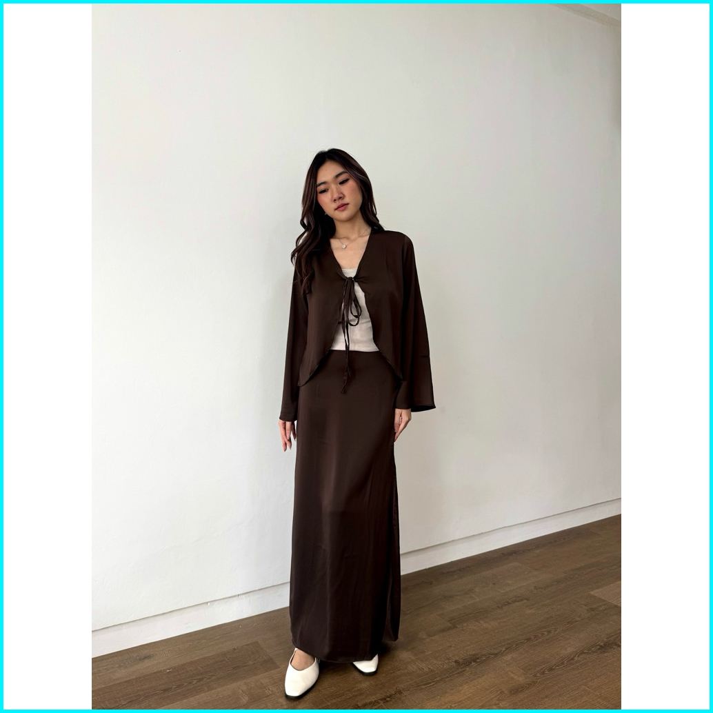 Mouiselle Herra One Set Satin Set Wanita - Set Outer With Mermaid Skirt Cardigan Outer Wanita