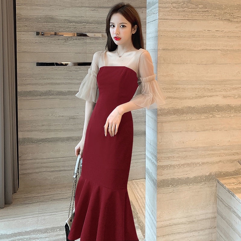 D156 - Korean Bodycon midi Dress party dress import casual Mermaid / Christmas Dress / Gaun wanita murah bergaya Korea k