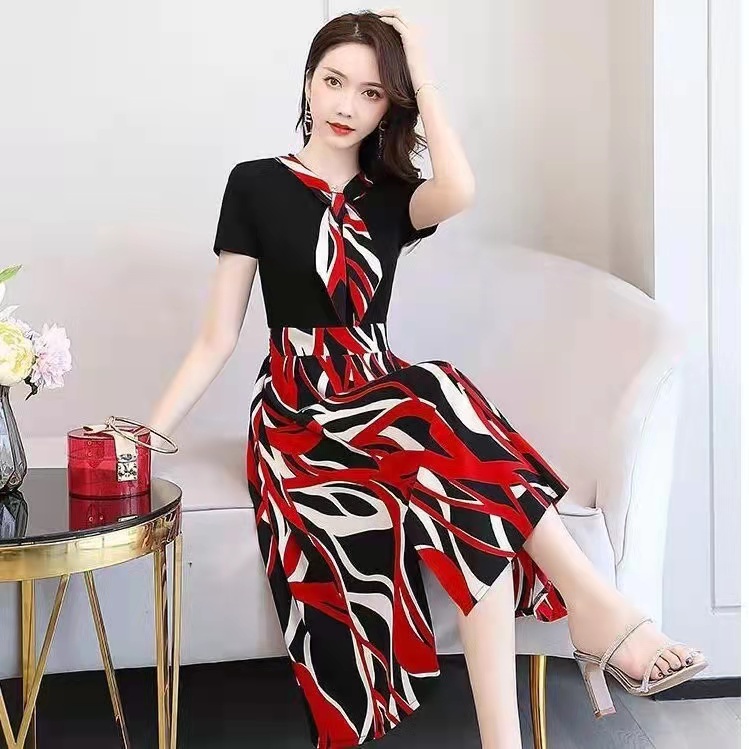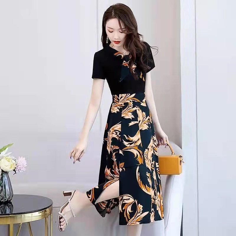 2022 musim semi gaya baru pinggang ramping dan dewi temperamen tipis Fan Qingshu rok bunga sifon angin