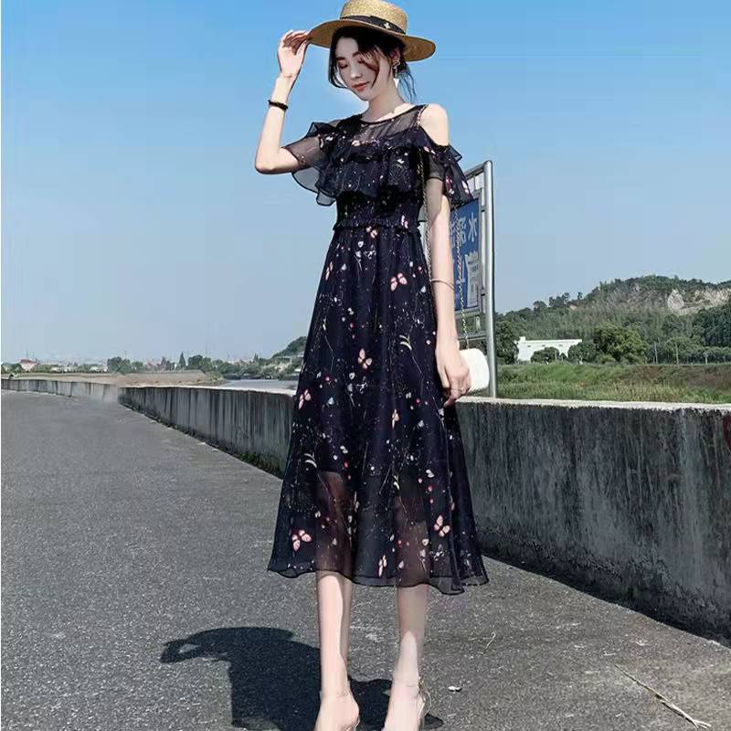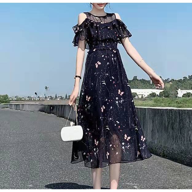 dress import koreadress korea/midi dress/long dress/dress korean style wanita/korean dress/dress korean style/Gaun bunga