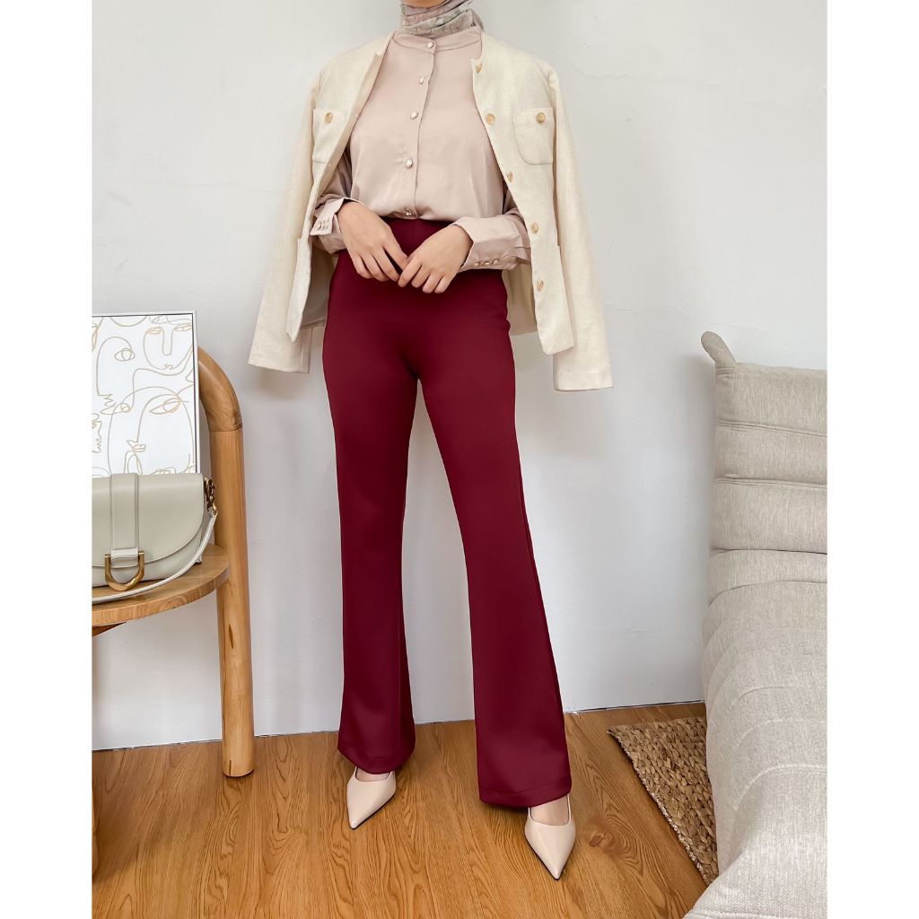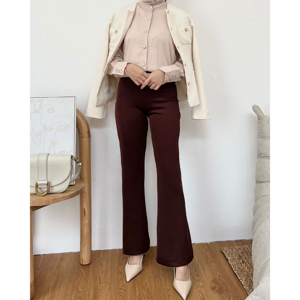 IRISH FLARE PANTS - Celana Cutbray wanita scuba - Highwaist Panjang - Kheva Mauza