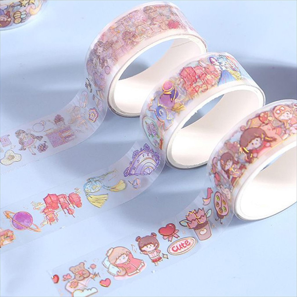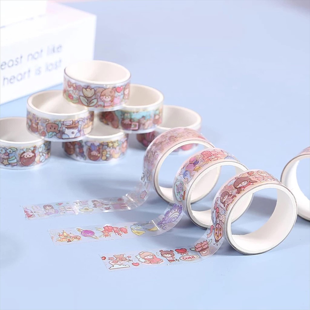 PROMO NA Selotip Karakter Roll Transparan 1 Pcs Satuan / Isolasi Solatip Gambar Kartun Motif Lucu / Solasi Washi Tape /