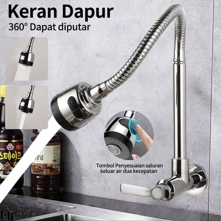Kran Air Angsa Fleksibel Wastafel Tembok Sink Stainless Kuningan Cuci Piring Minimalis Premium Keran
