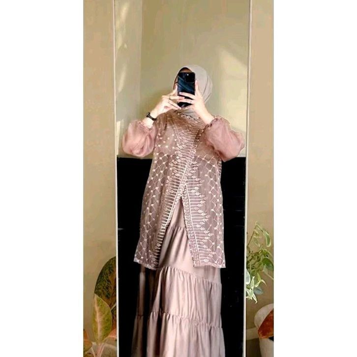Fiona Zize Outer Brokat Tunik Organza Full Payet Outer Wanita Kondangan Wisuda Bridesmaid Hari Raya Series Premium Murah