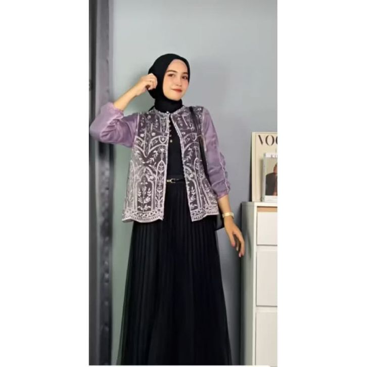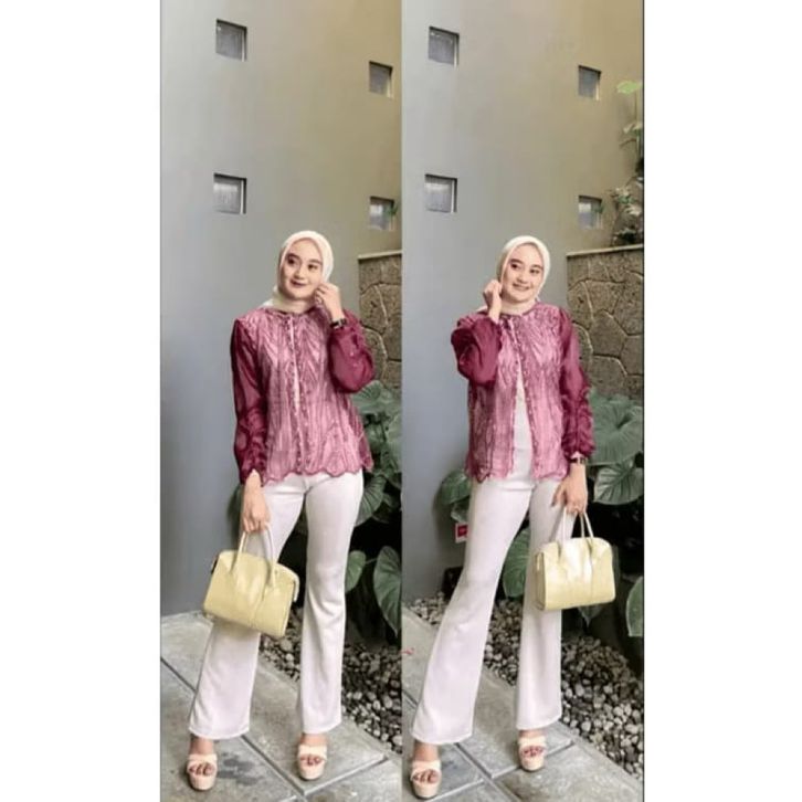 Zaina Outer Crop Brukat Organza Sapto Outer Kondangan Outer Lebaran Outer Wanita Kondangan