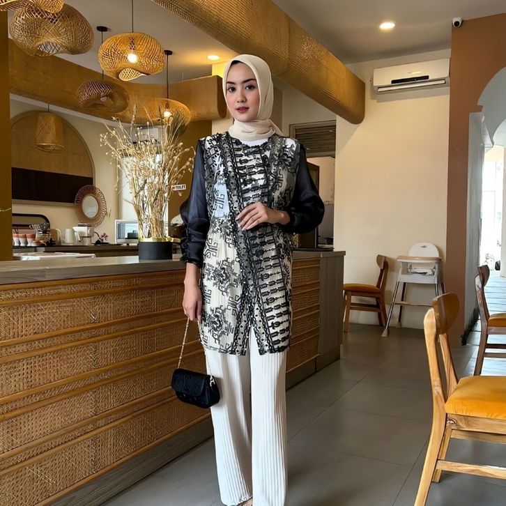 Zize Outer Brokat Organza Full Payet / Tunik Brukat / Baju Hari Raya, Kondangan, Wisudaan atau Bridesmaids Outer Wanita