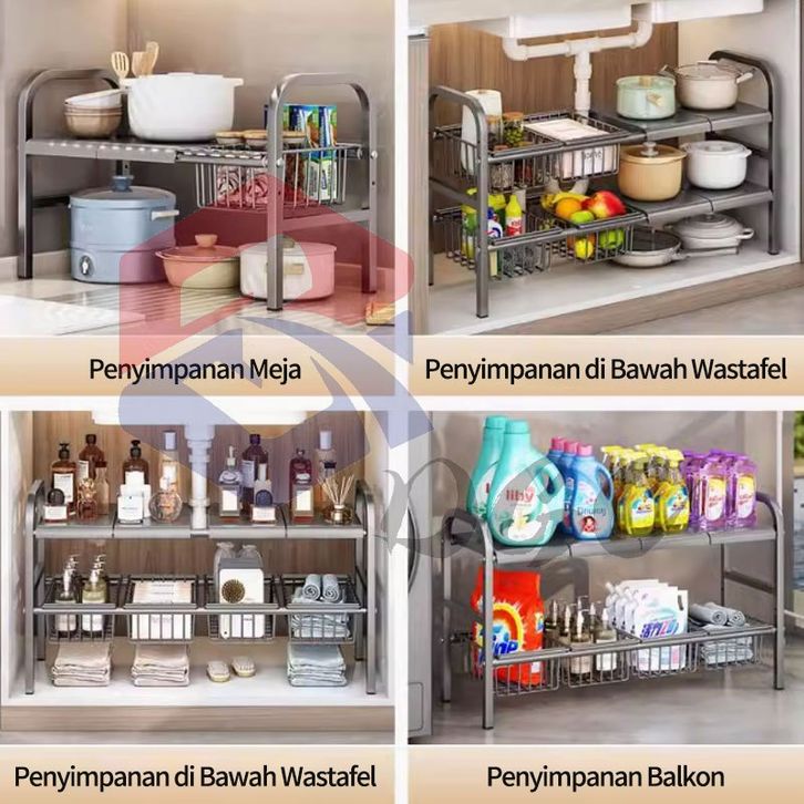 DGC Kitchen Organizer Under Sink Rak Bawah Wastafel Rak Serbaguna Dapur Extendable Stainless Steel