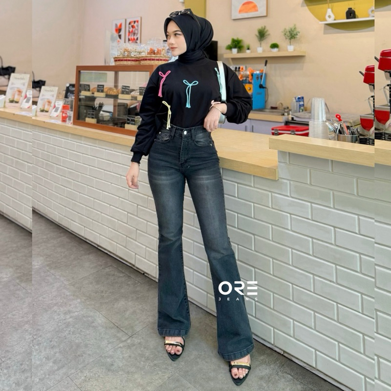 ORE - CZ 930 Size 27-34 - Highwaist Strecht Cutbray Jeans Vintage Black Washed Slim-fitting