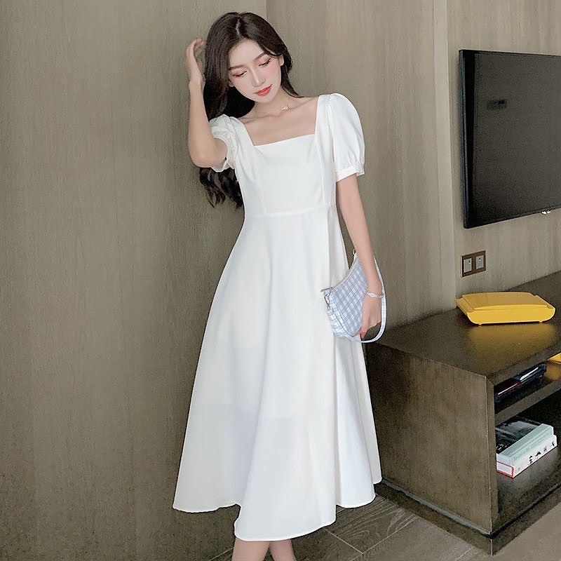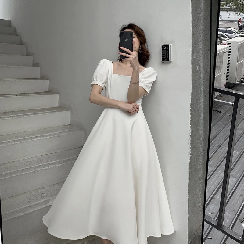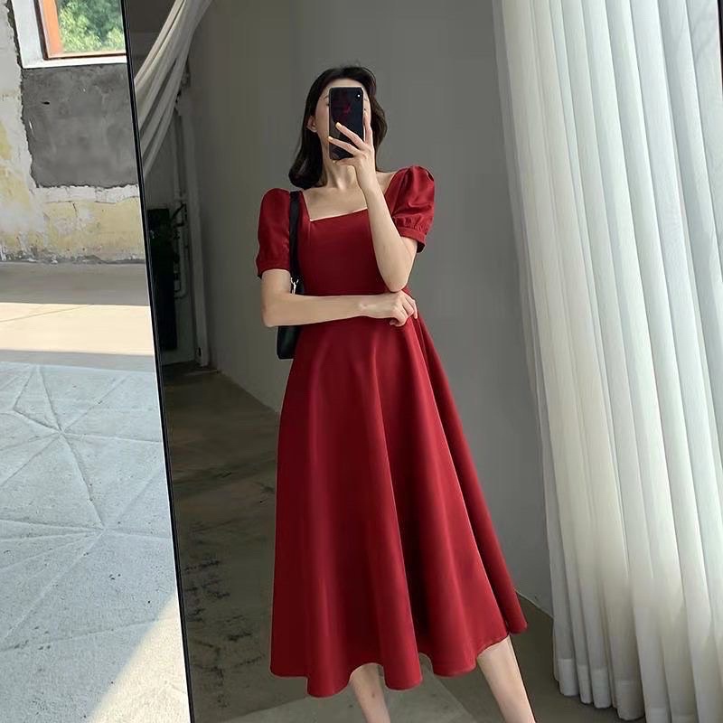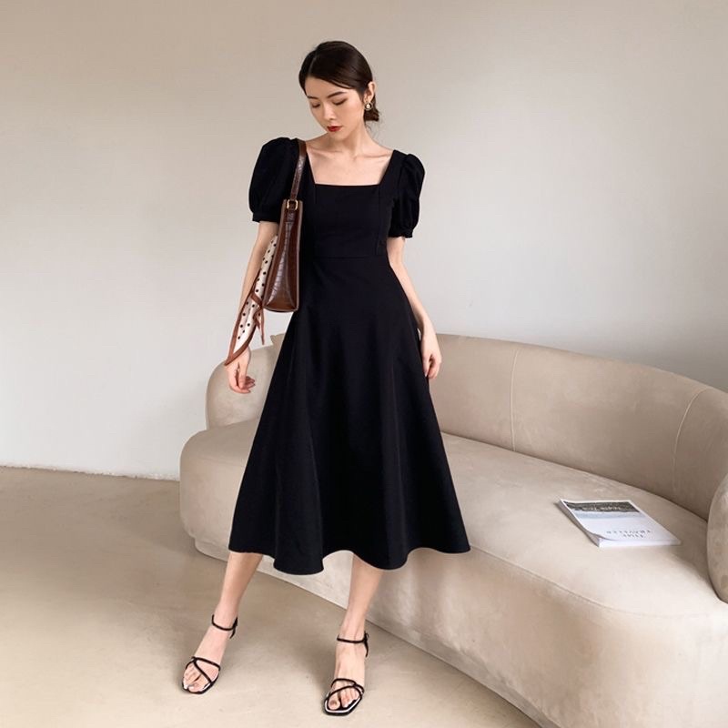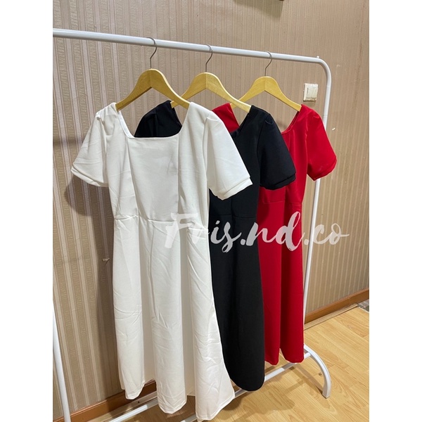 TANPA DP D103-Dress korea Hepburn Best seller style long dress Square neck (Black,red,white) / Gaun wanita murah bergaya