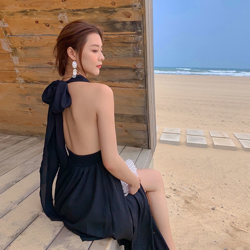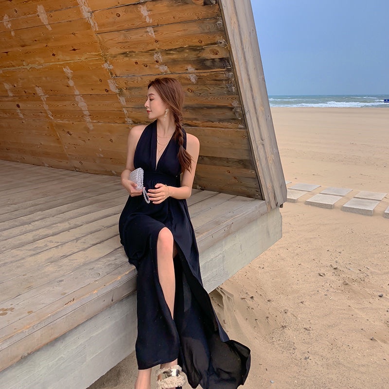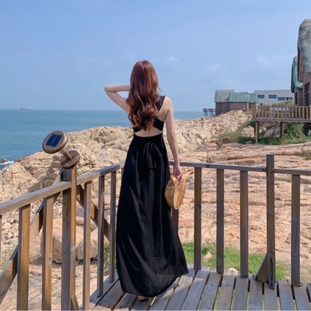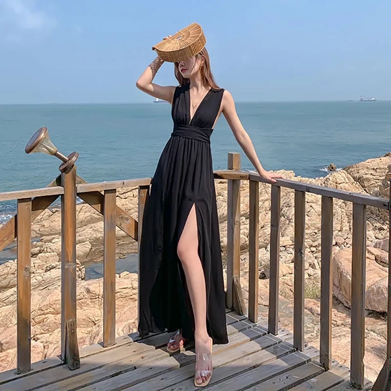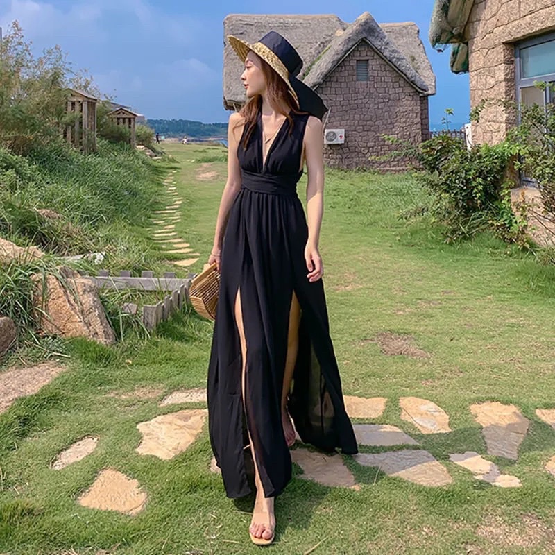 PROMO D120 - Korean premium Long dress Chiffon Multiway Black / Casual dress pantai