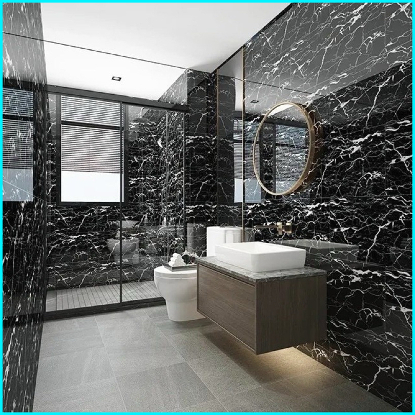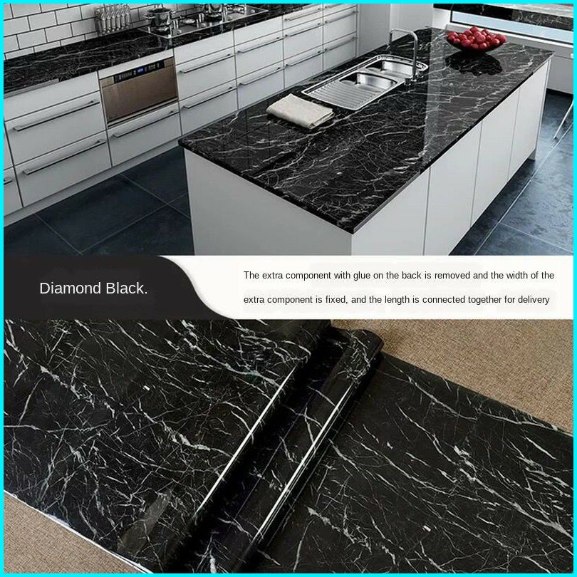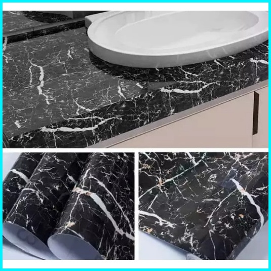 Wallpaper Dinding Murah Wallpaper Sticker Motif Marmer Dasar Hitam 45 Cm X 9 - 10 M