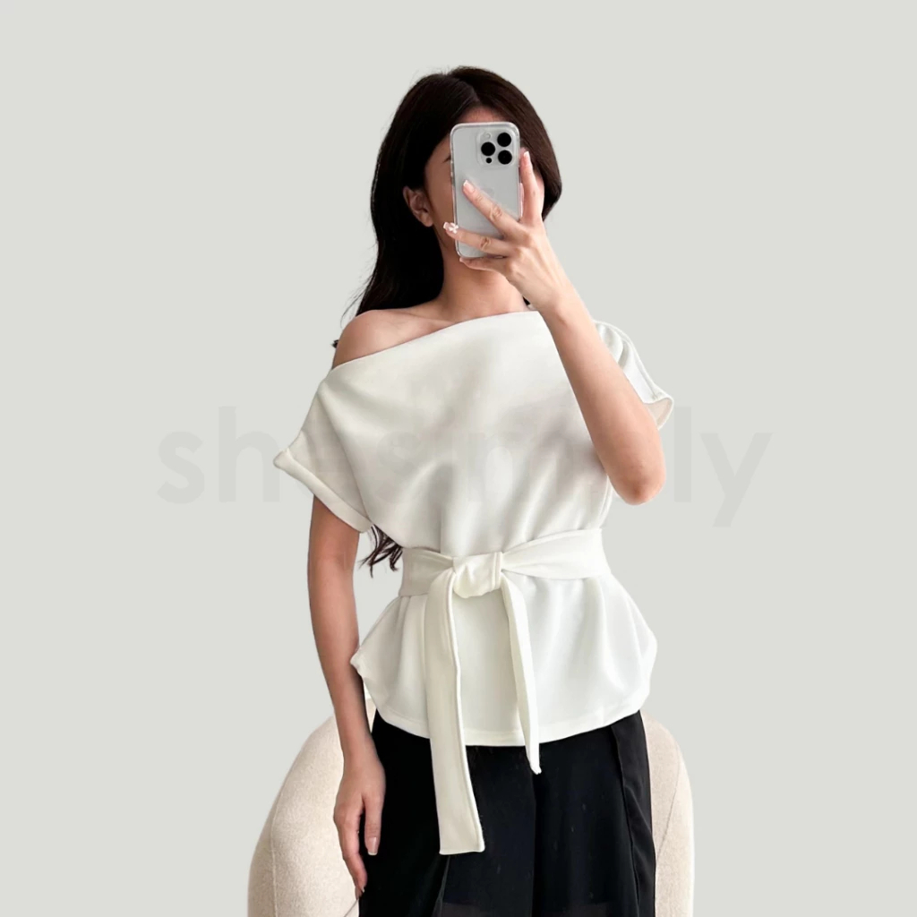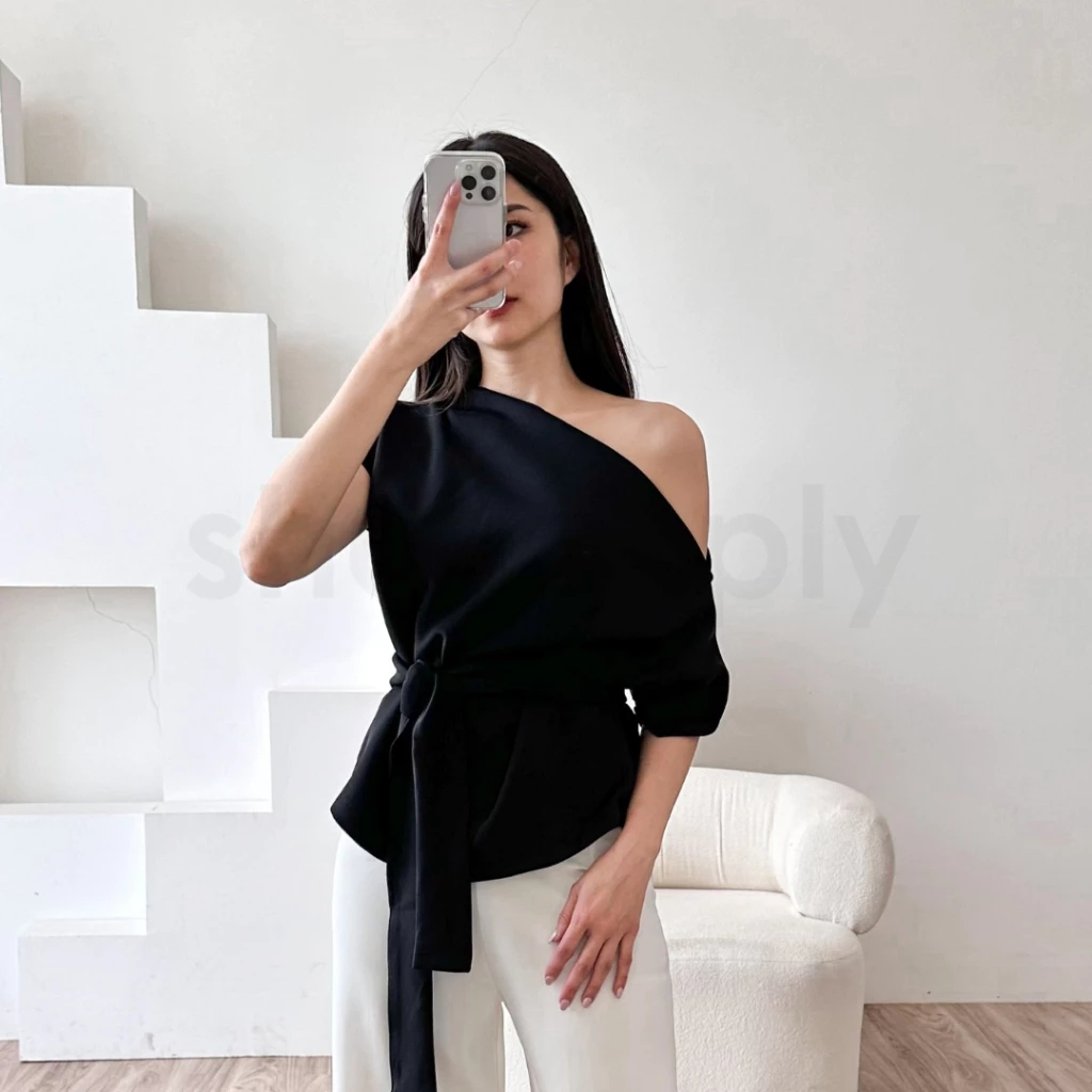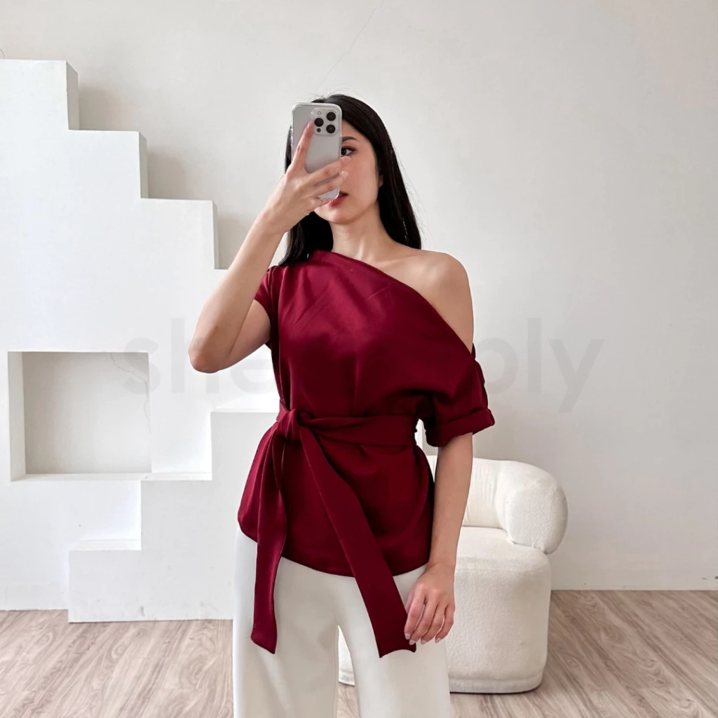 Vienna Top Atasan Casual Wanita Korea Sabrina One Shoulder Off Shoulder Top Blouse Wanita Atasan wanita