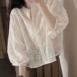 Blouse atasan wanita lengan panjang motif bunga hijab friendly Blouse Wanita Kekinian