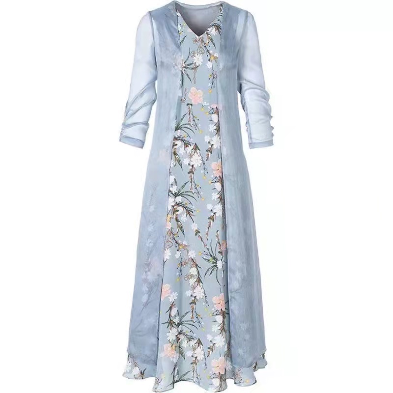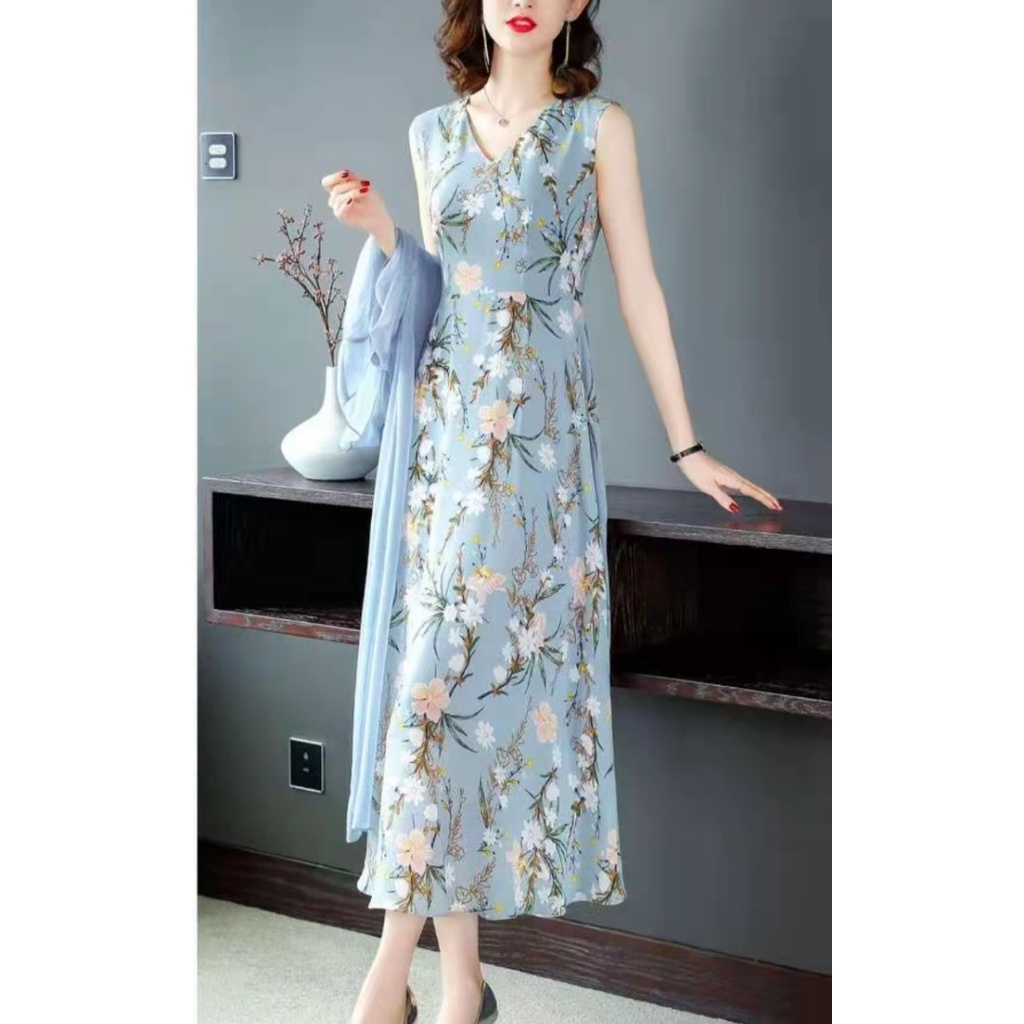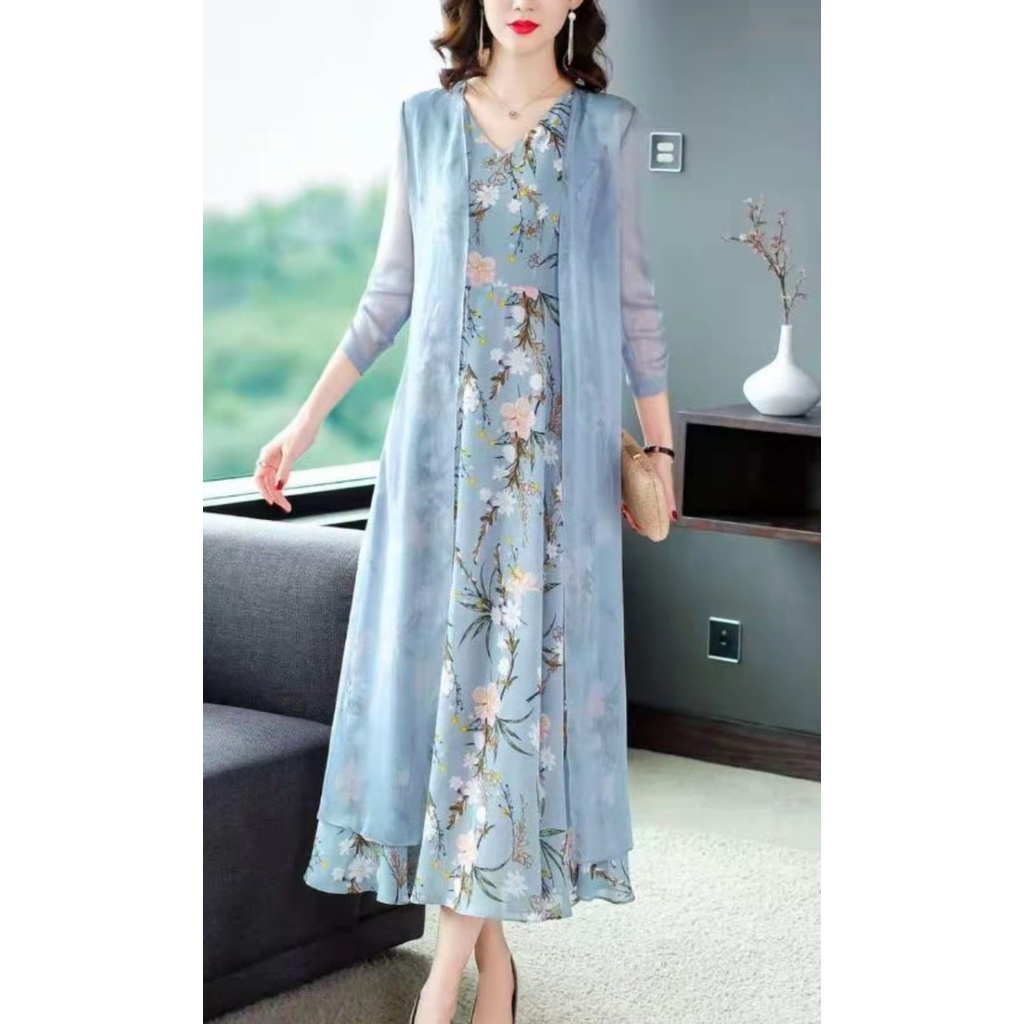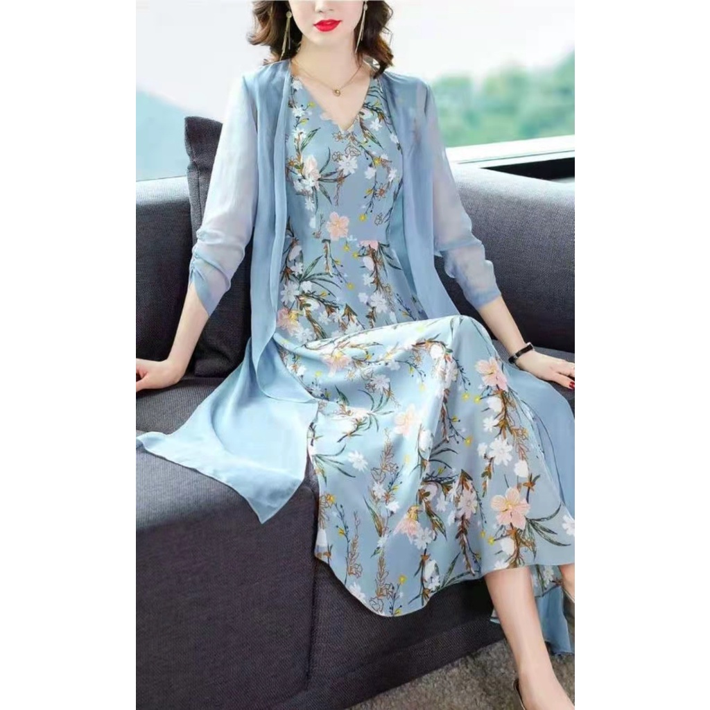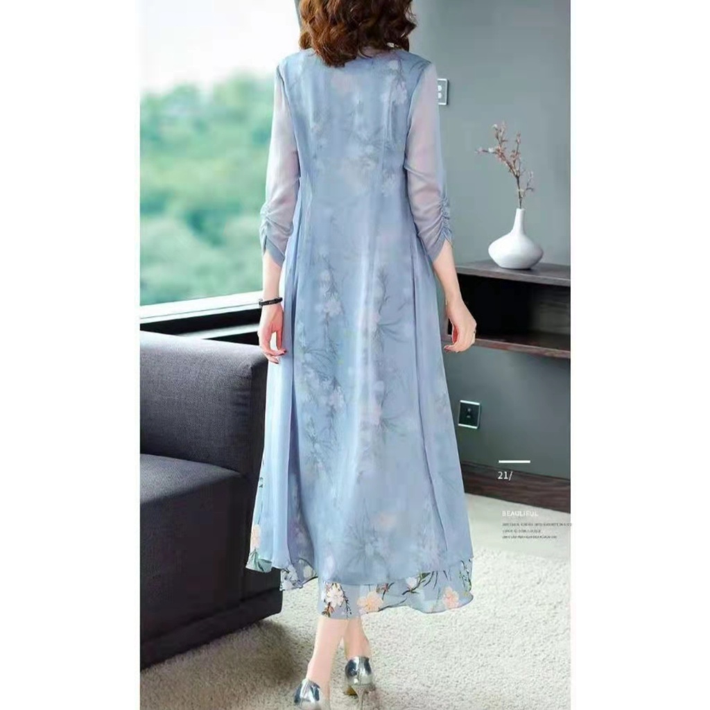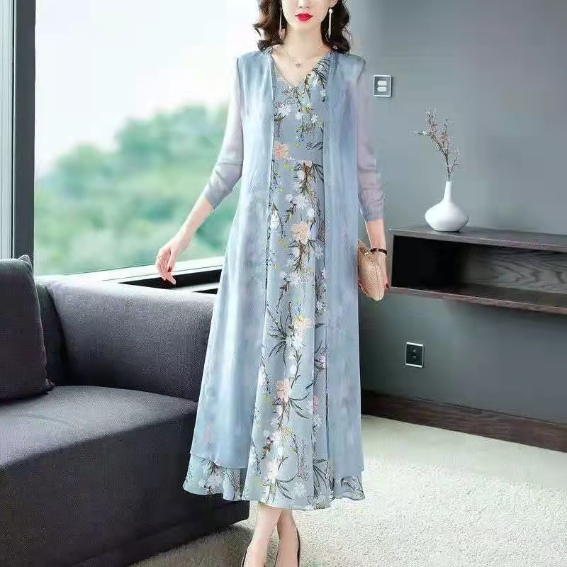 baru ukuran besar gaun MM gemuk bisa memakai busana longgar penutup perut gaun sifon + setelan pelindung matahari