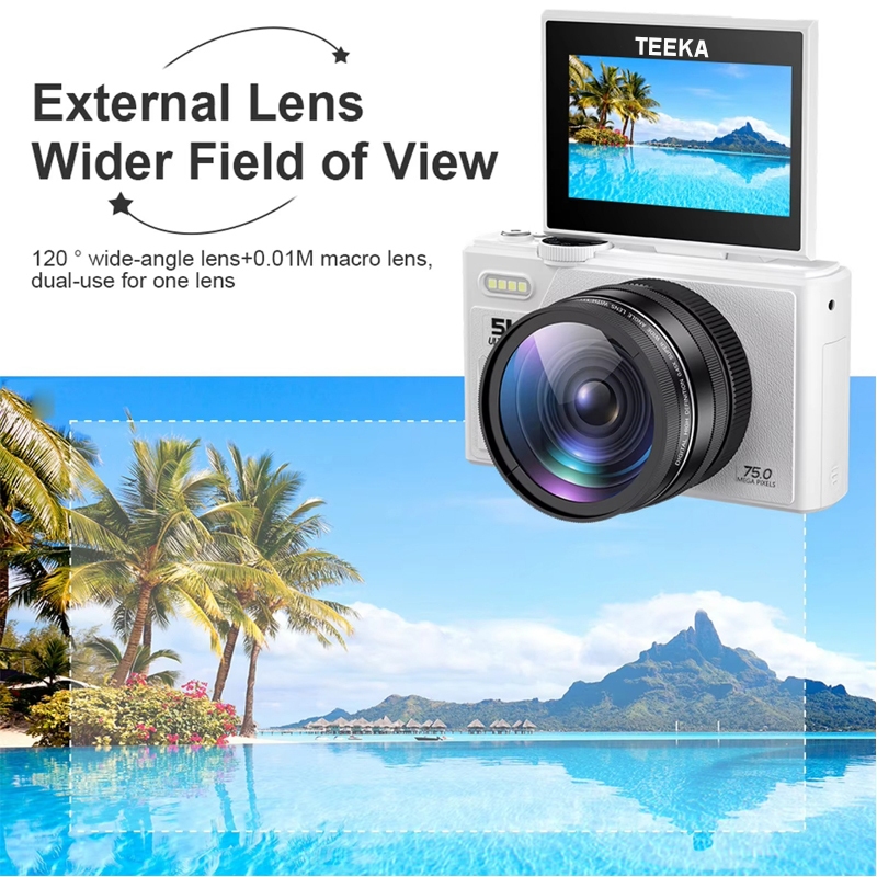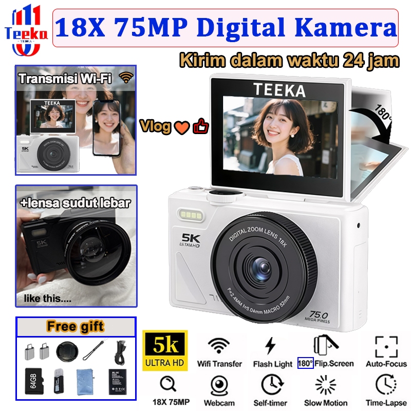 TEEKA [W1] 75MP / 64MP 5K Kamera Digital Wifi Retro Kamera Video 4K Zoom Digital 18x dengan Koneksi WIFI Dukungan Selfie